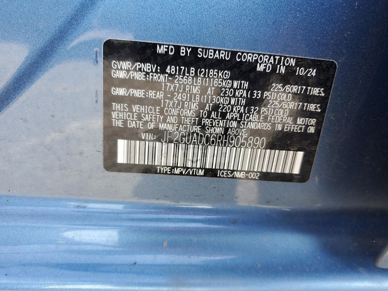 • VIN: JF2GUADC6RH905890