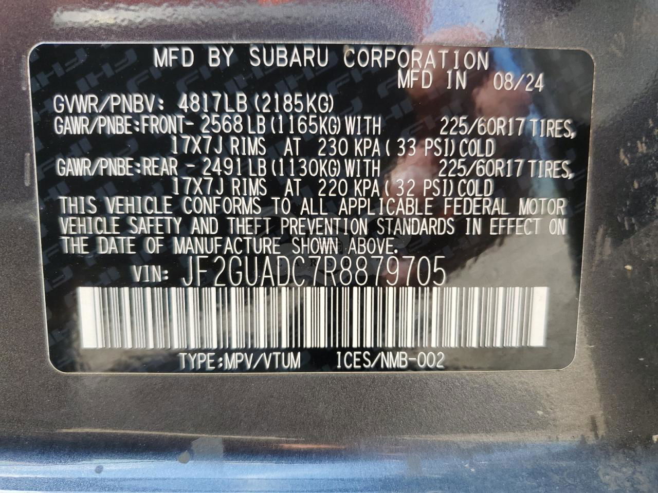 • VIN: JF2GUADC7R8879705