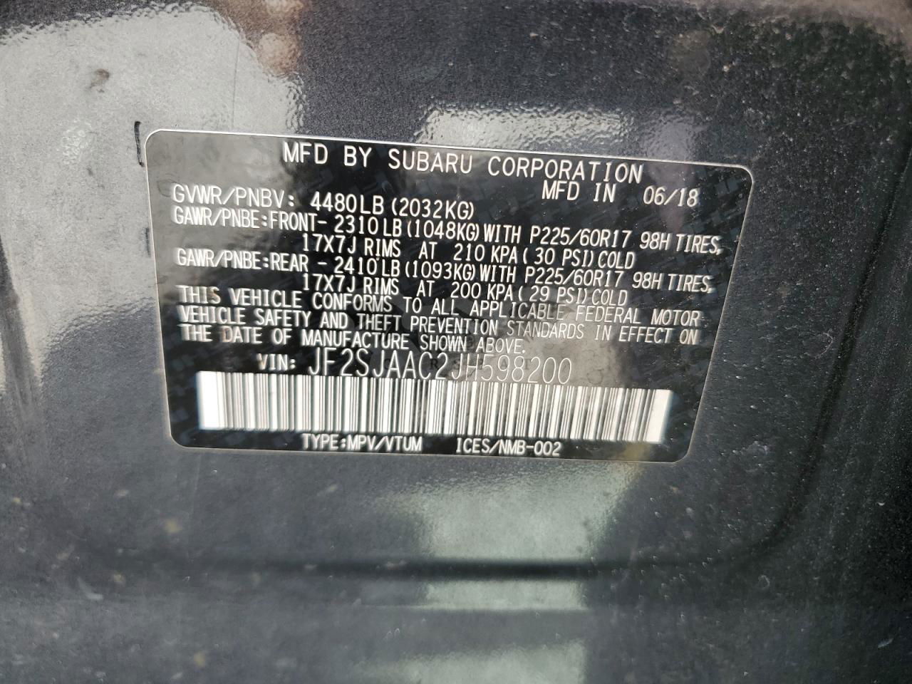 • VIN: JF2SJAAC2JH598200