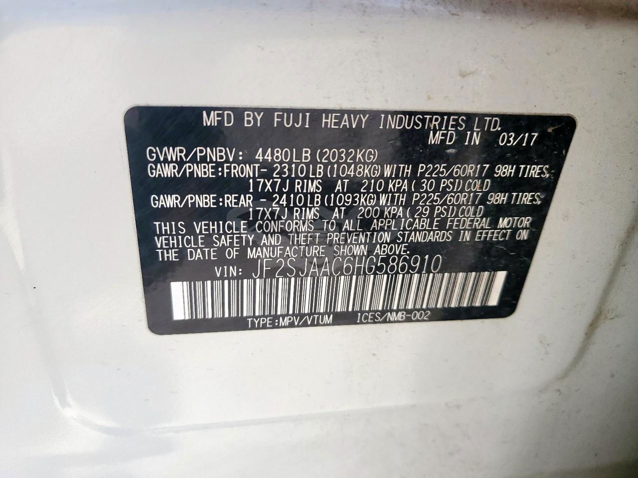 • VIN: JF2SJAAC6HG586910