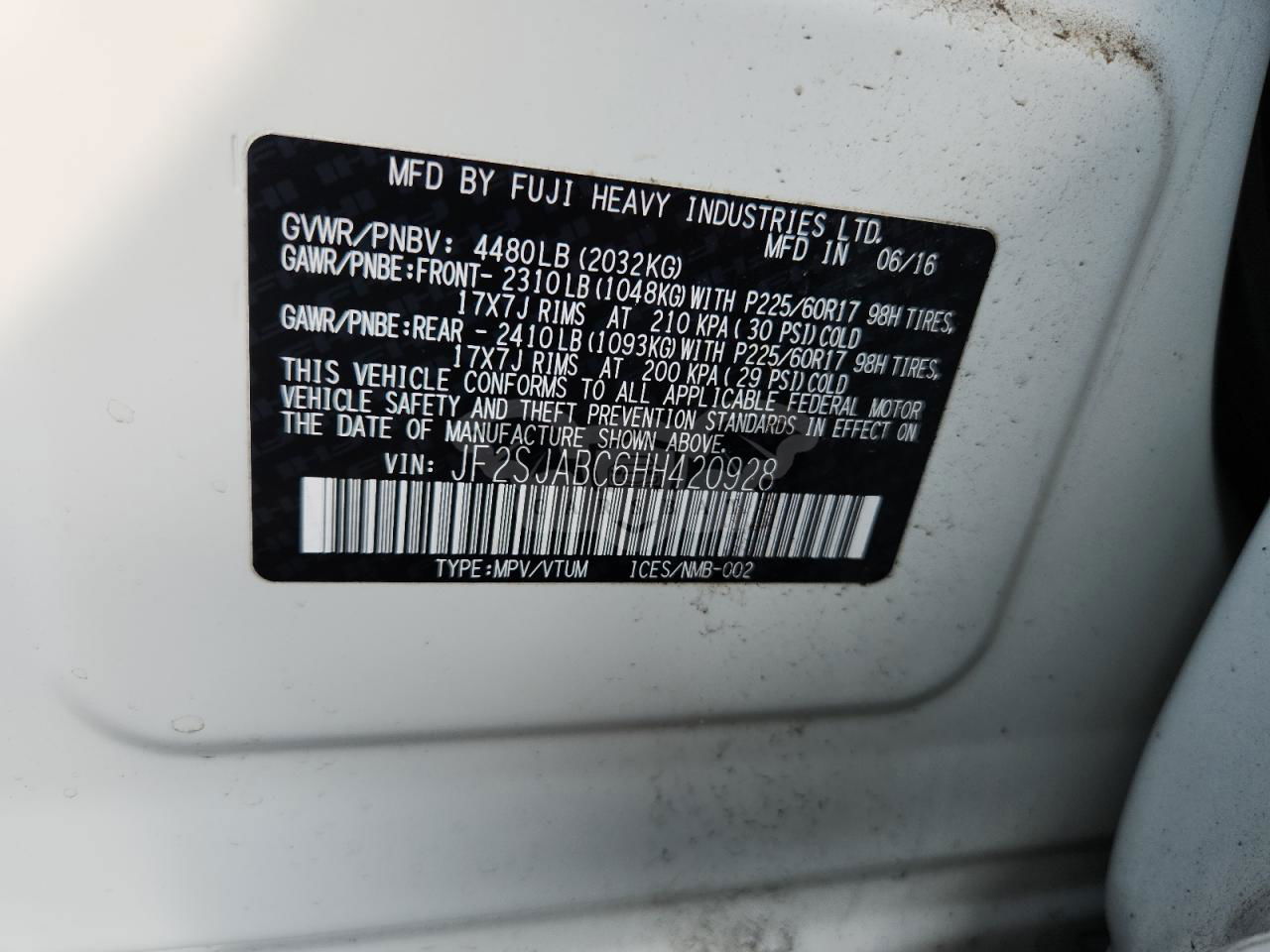 • VIN: JF2SJABC6HH420928