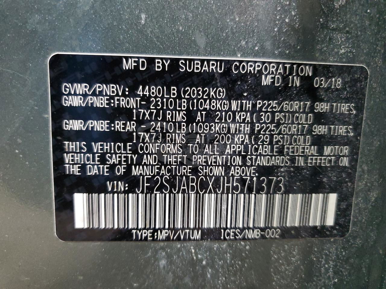 • VIN: JF2SJABCXJH571373