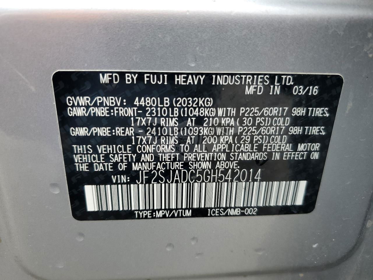• VIN: JF2SJADC5GH542014