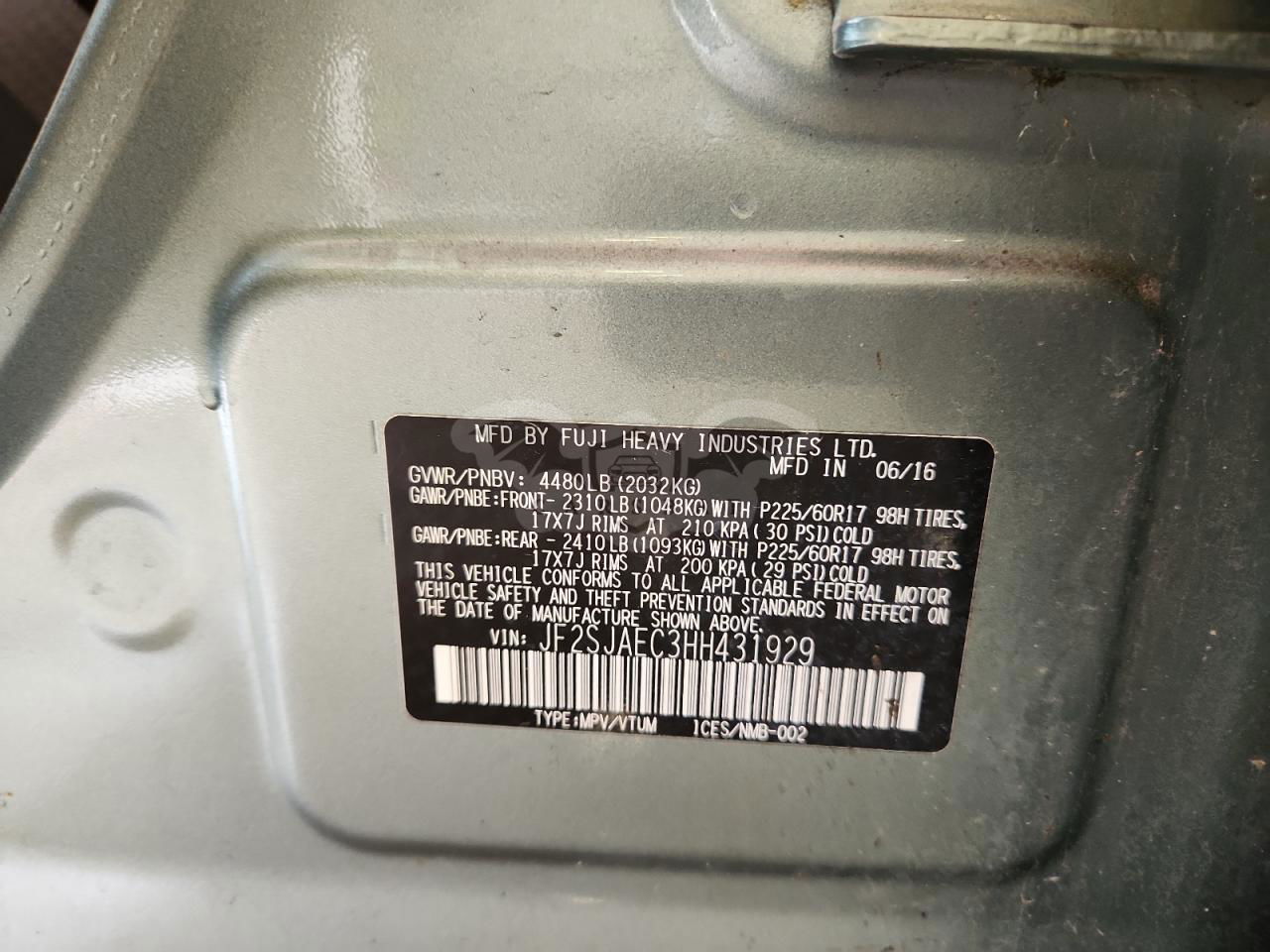 • VIN: JF2SJAEC3HH431929