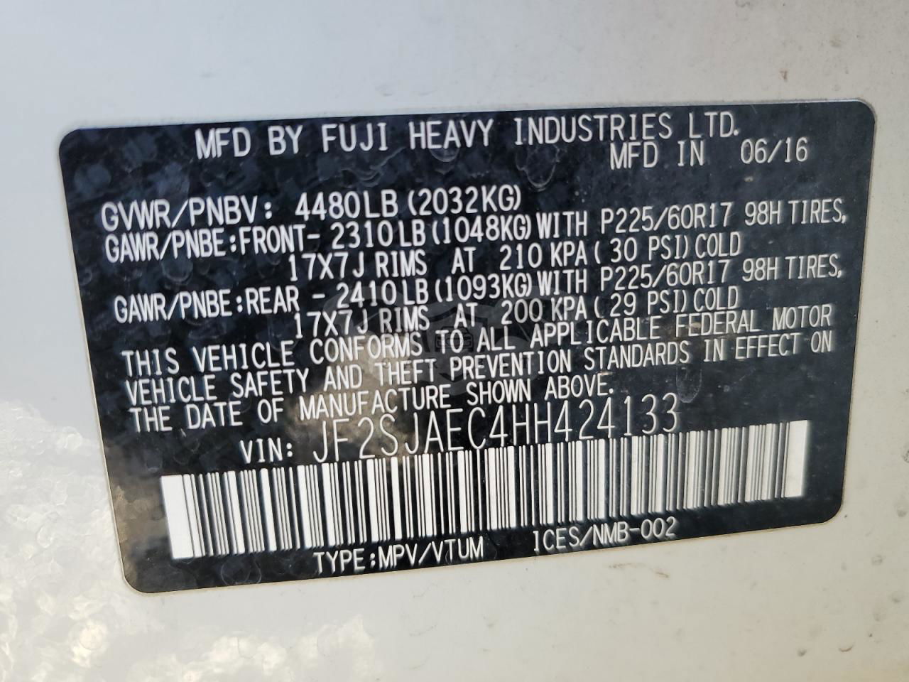 • VIN: JF2SJAEC4HH424133