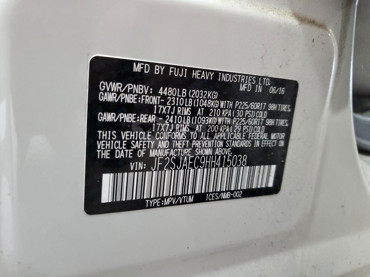 • VIN: JF2SJAEC9HH415038