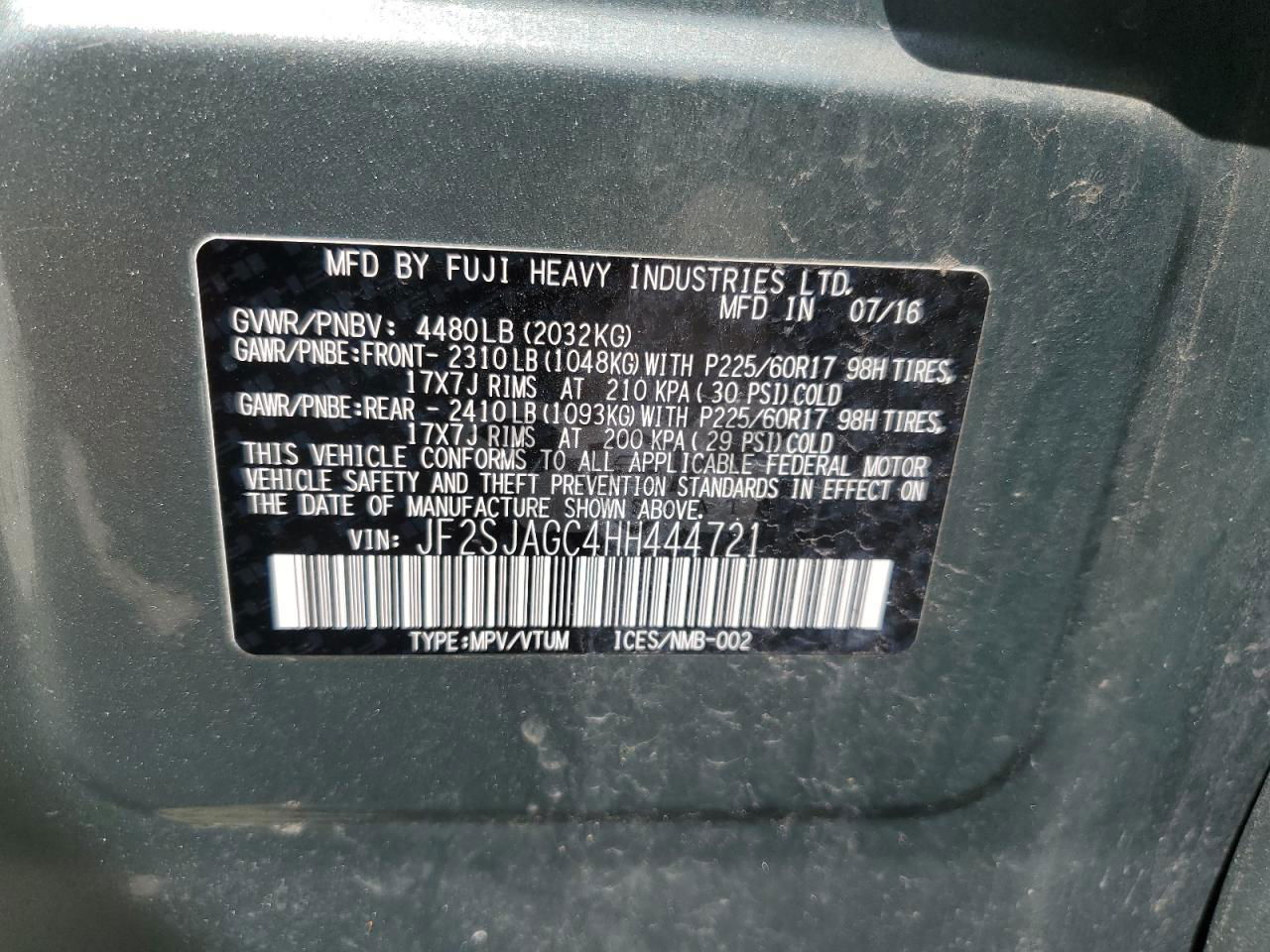 • VIN: JF2SJAGC4HH444721
