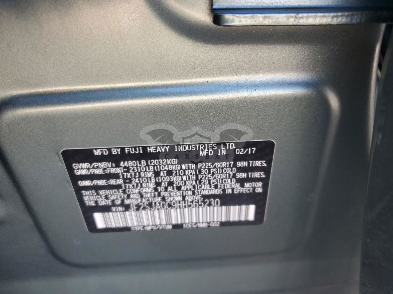 • VIN: JF2SJAGC9HH565230