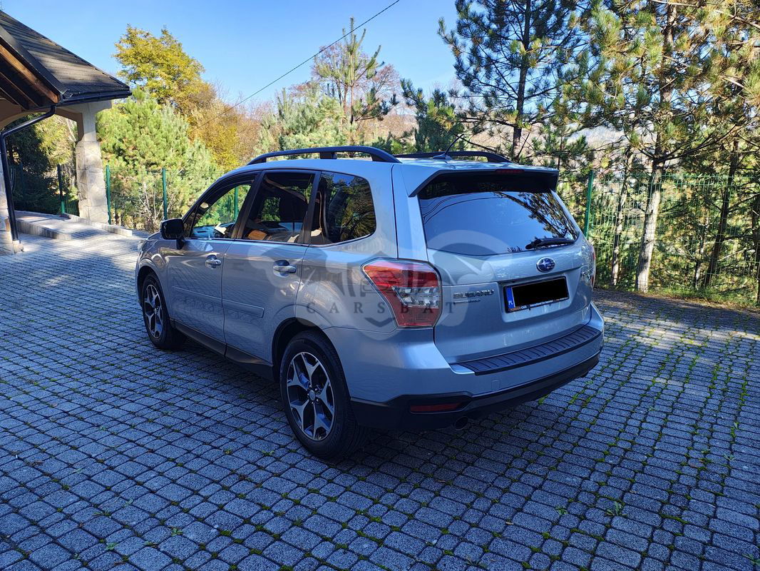 Subaru Forester MY2014 XT – 240KM, silnik z bezpośrednim wtryskiem, turbo. Stały napęd AWD z automatyczną skrzynią biegów. Tryby do jazdy terenowej z reduktorem. Samochód w najwyższej możliwej wersji wyposażenia z Kamerami EYE SIGHT – aktywny tempomat, awaryjne hamowanie i ostrzeżenia przed zjazdem z pasa ruchu (bardzo ładnie i płynnie działają te wszystkie systemy wspomagania, na otomoto można spotkać opisy innych pojazdów ‘w najwyższej wersji wyposażenia’ w których sprzedający wprowadzają w błąd, bo nie mają opcji z kamerami). Opony wielosezonowe prawie jak nowe! Przebieg ok 192tyś km (stale rośnie). Ważny przegląd i ubezpieczenie. Pojazd sprzedawany na FV 23% , Cena netto: 56800 PLN (nie sprzedaje za netto). Możliwość finansowania, wszystkie formalności finansowania mogą być załatwione przez zaprzyjaźnioną firmę. Kupujący zwolniony z podatku PCC, prawie 1400PLN. Po kompletnym serwisie Olejowym, wymiana kompletu filtrów (silnika, oleju, kabinowy), ostatnio wykonany serwis klimatyzacji (uzupełnienie czynnika) wraz z ozonowaniem kabiny, zrobiony przegląd zawieszenia i wymiana niezbędnych elementów eksploatacyjnych, zakończone kontrolą zbieżności. Nowy akumulator. Wykonano również zabezpieczenie podwozia środkami marki Boll (konserwacja podwozia i profili zamkniętych – mogę udostępnić zdjęcia wykonane przed montażem pokryw/osłon podwozia). Pojazd pomimo przebiegu i upływu lat znajduje się w b. dobrej kondycji mechanicznej i wizualnej. Nadal dobrze utrzymany może nie tracić na wartości – jak wszystkie poprzednie wersje z silnikami Turbo od Subaru. Samochód posiada następujące wyposażenie: - Silnik 2.0T 240KM, wysoka kultura pracy jednostki, świetna dynamika i bardzo niskie spalanie jak na Subaru poprzez bezpośredni wtrysk i zestrojenie ze skrzynia CVT, rozrząd nie wymaga wymiany wg. interwałów serwisowych, - Skrzynia automatyczna z trybami jazdy (Inteligent, Sport i Sport #) w tym z trybem terenowym z reduktorem, - Kamery EYE Sight – Aktywny tempomat, Awaryjne hamowanie, Ostrzeżenie przed zjazdem z pasa ruchu, - Nagłośnienie fabryczne wraz z jednostką sterującą dotykową navi – Harman/Kardon (mapy PL do wgrania), wbudowany zestaw głośnomówiący Bluetooth i odtwarzacz Bluetooth, - Skórzana tapicerka i podgrzewane przednie fotele, el. ustawiany fotel kierowcy wraz z ustawieniem podparcia odcinka lędźwiowego, - Panoramiczny dach wraz z otwieraniem (szyberdach), - El. szyby x4, - 2 strefowa automatyczna klimatyzacja, - Bezkluczykowy system (otwieranie i odpalanie pojazdu), - 18’’ fabryczne koła wraz z prawie nowymi wielosezonowymi oponami Michelin, czujniki cieśnienia w kołach, - Kamera cofania, - Lampy LED/Xenon EU z trybem Auto (automatyczne przełączanie świateł do jazdy dziennej na światła mijania), - Asystent ruszania ze wzniesienia, - Elektrycznie podnoszona klapa bagażnika, - Światła przeciwmgielna, - Fabryczne zegary/wskaźniki: temp oleju, doładowanie, i inne… - Podgrzewane lusterka boczne i el. ustawiane, podgrzewana tylna szyba i wycieraczki przedniej szyby, - Automatycznie ściemniające się lusterko wsteczne – wewnętrzne, - 2 komplety dywaników: lato/zima, - Nowy akumulator, - Zestaw: gaśnica, trójkąt, apteczka, - Instalacja pod głośnik niskotonowy/subwoofer poprowadzona do bagażnika, - Przyciemniane tylne szyby. Na cały serwis, naprawy a także stan pojazdu sprzed importu jest pełna dokumentacja do udostepnienia (Faktury, Zdjęcia, raport Carfax – min. również potwierdzenie przebiegu, części nowe ASO). Możliwość delikatnej negocjacji ceny. Zachęcam do kontaktu tylko poważnie zainteresowanych Klientów.