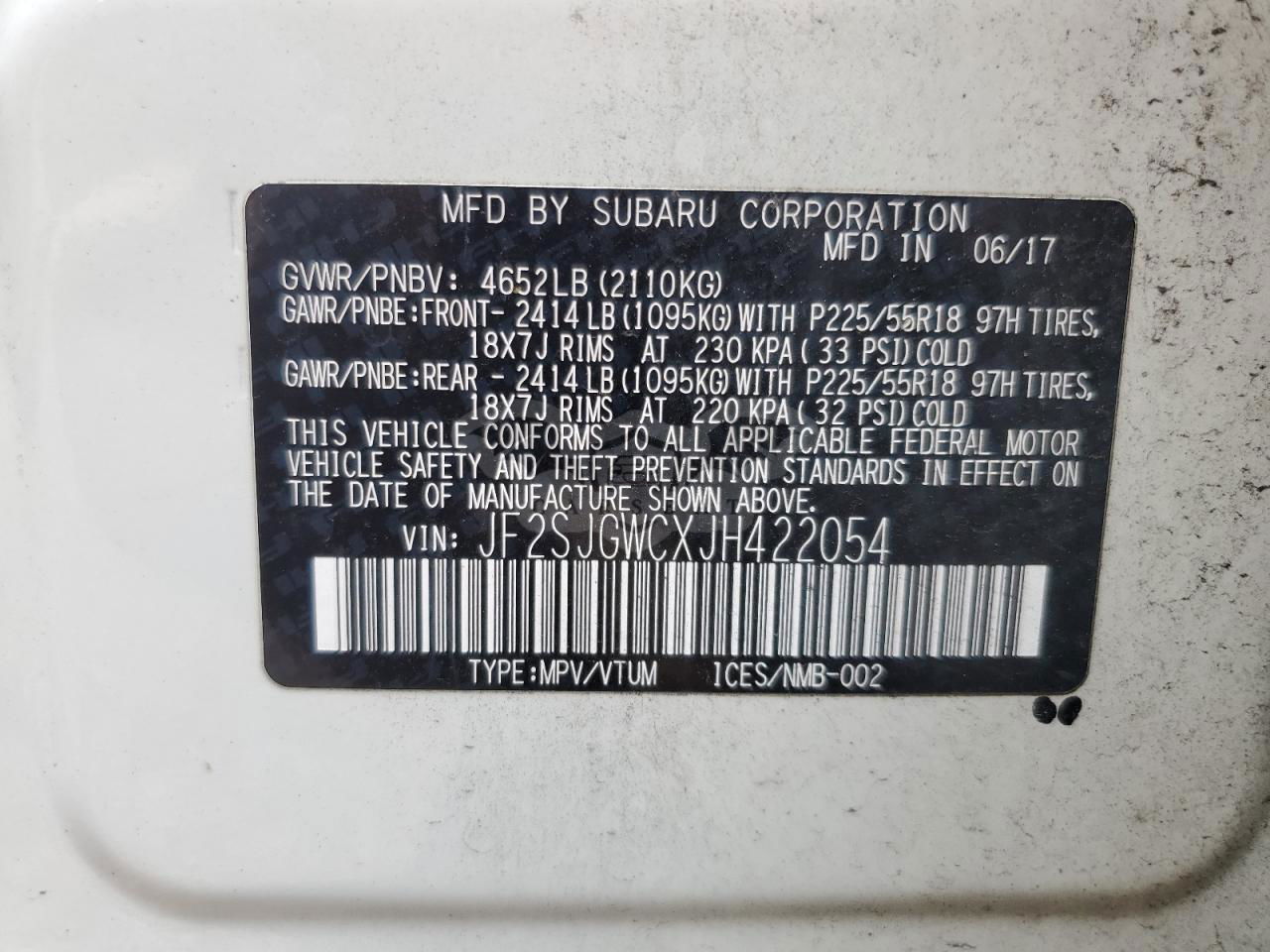 • VIN: JF2SJGWCXJH422054