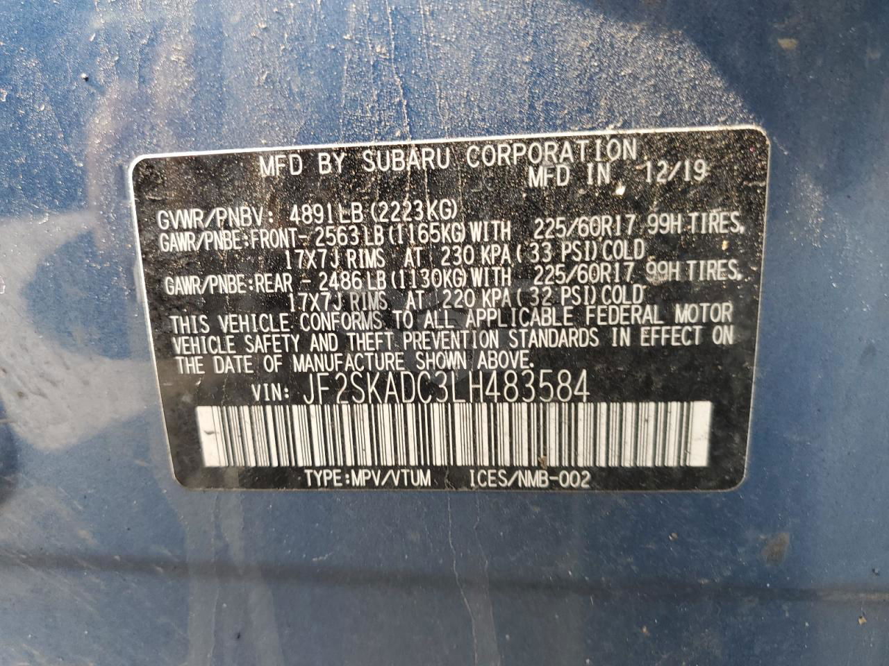 • VIN: JF2SKADC3LH483584