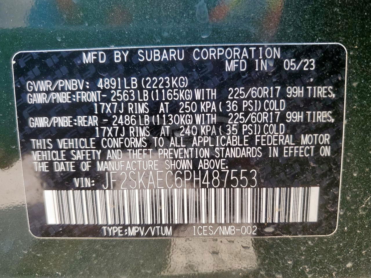 • VIN: JF2SKAEC6PH487553