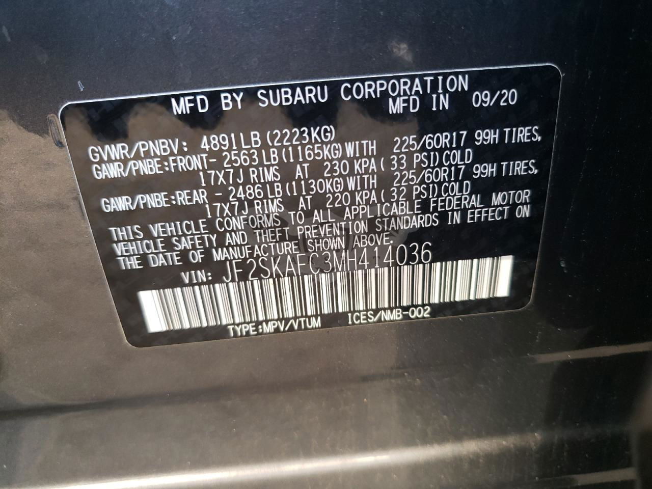 • VIN: JF2SKAFC3MH414036
