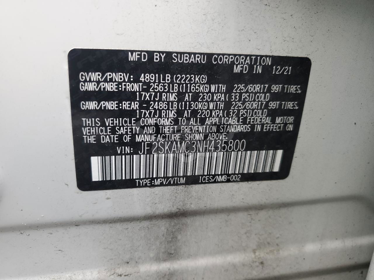 • VIN: JF2SKAMC3NH435800