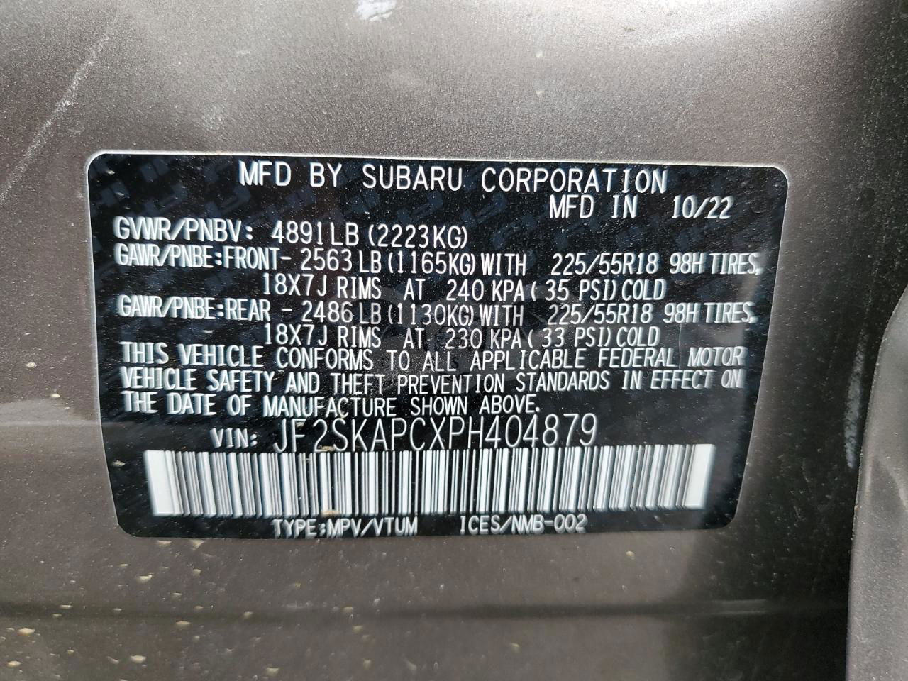 • VIN: JF2SKAPCXPH404879