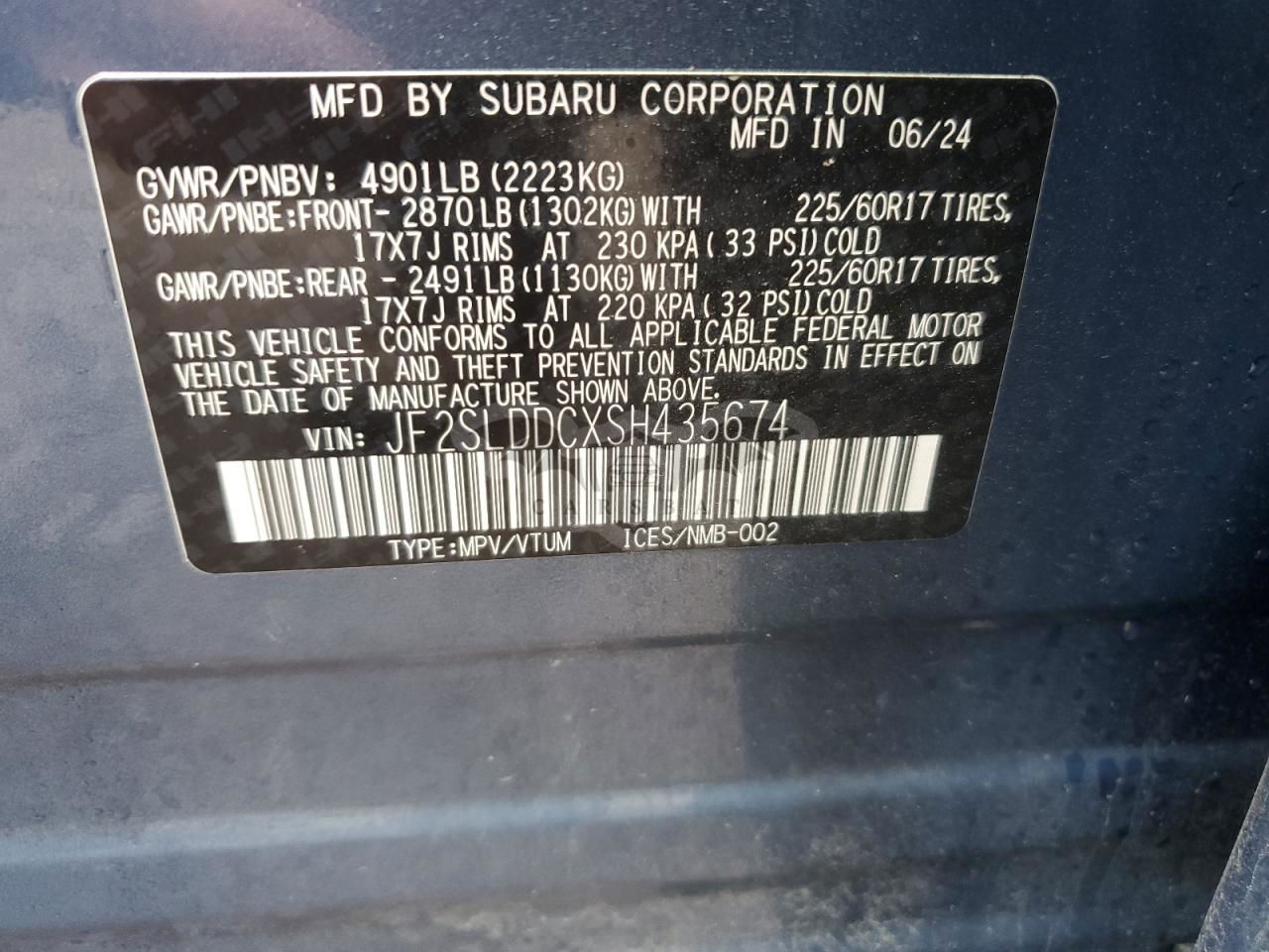 • VIN: JF2SLDDCXSH435674