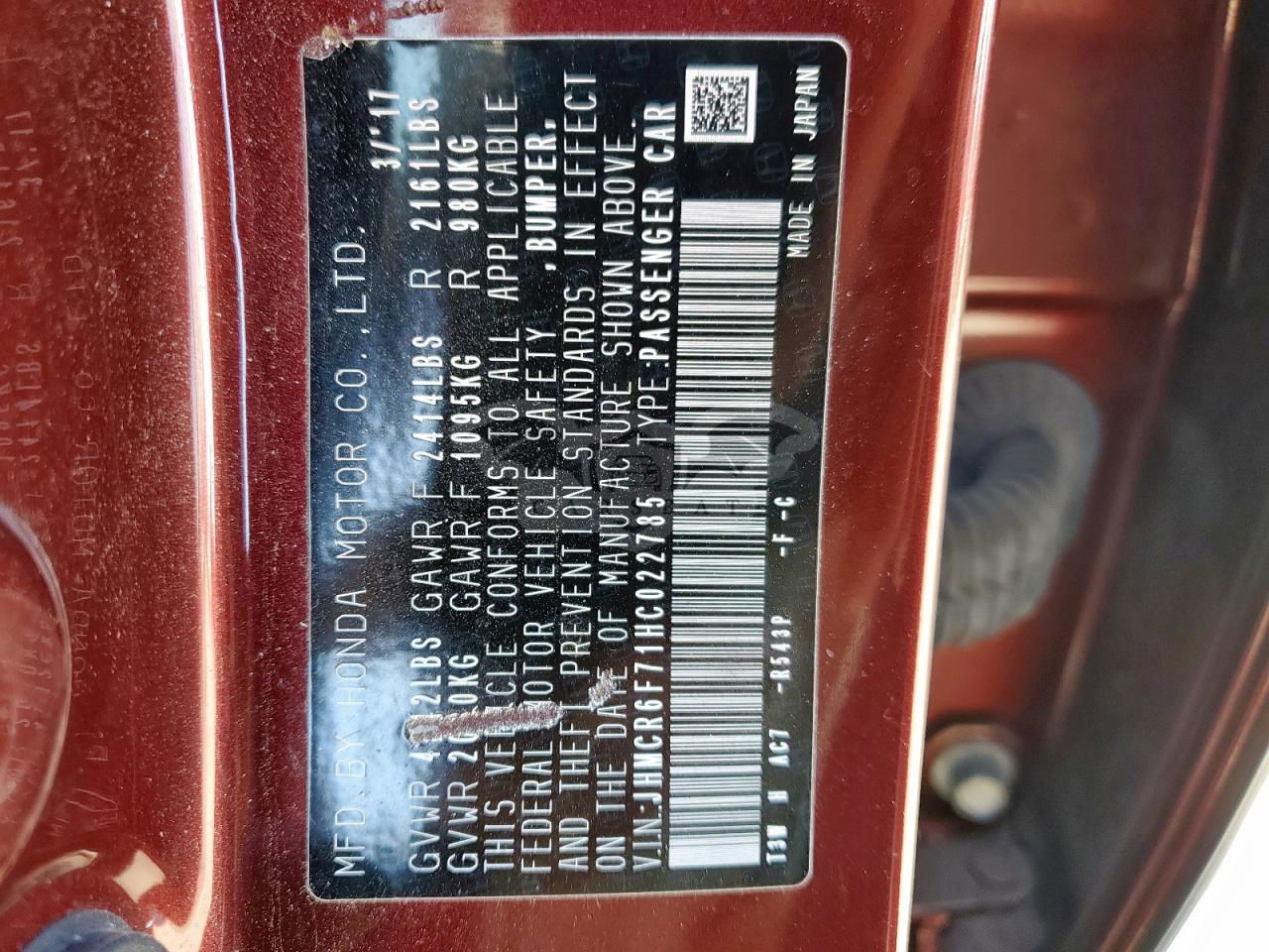 JHMCR6F71HC022785