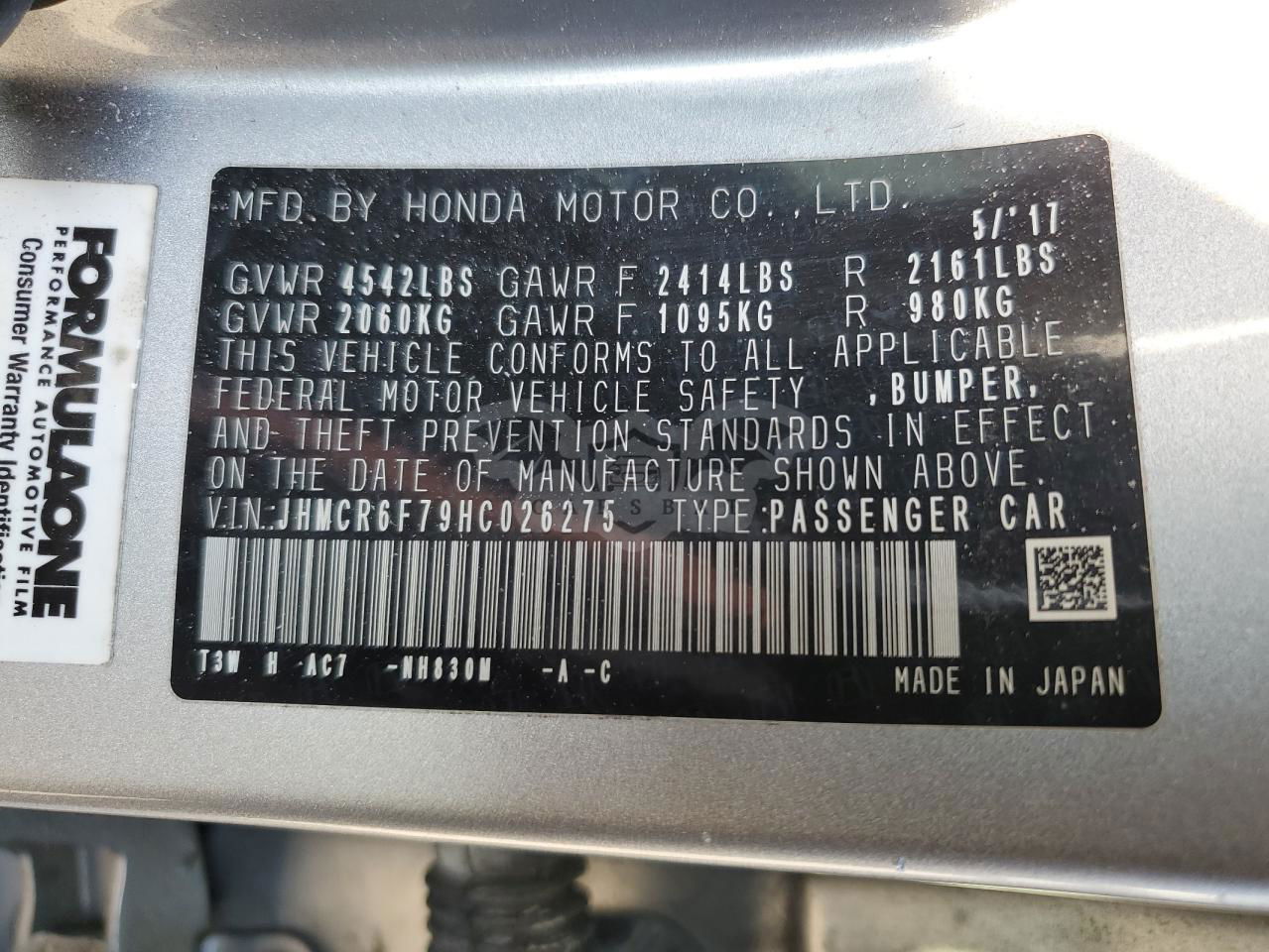 • VIN: JHMCR6F79HC026275