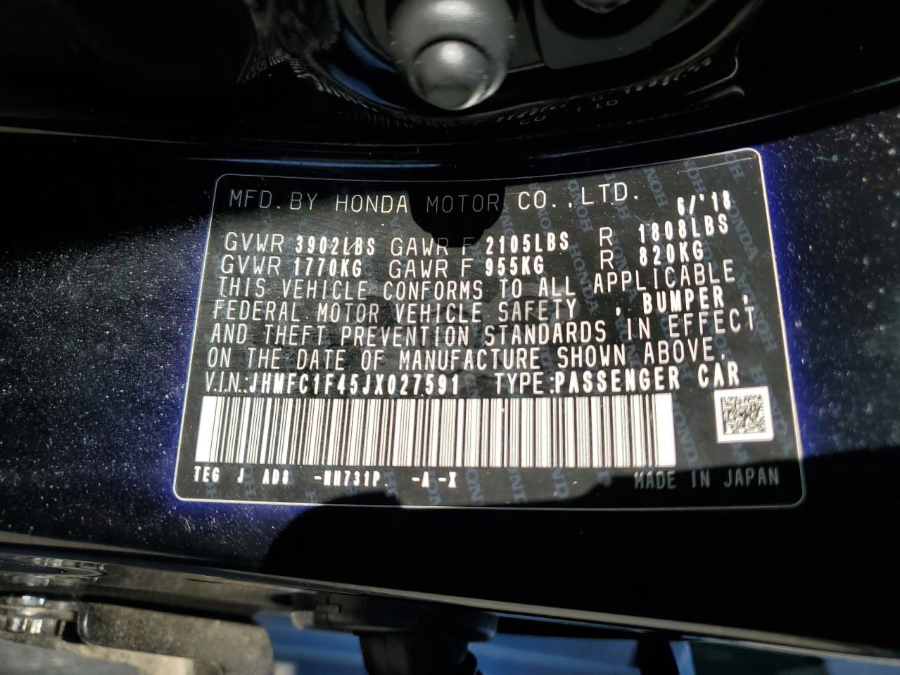 • VIN: JHMFC1F45JX027591