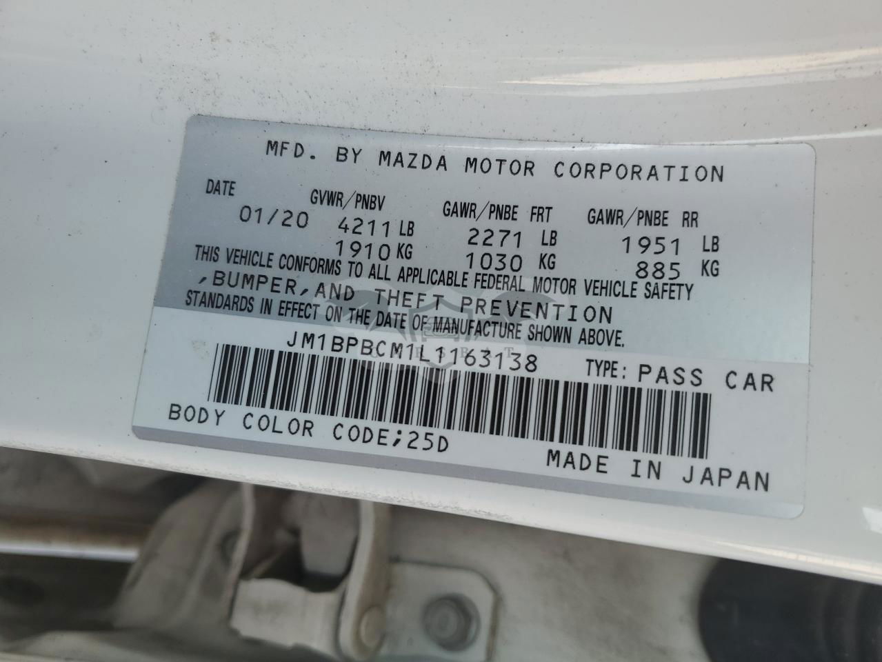 • VIN: JM1BPBCM1L1163138