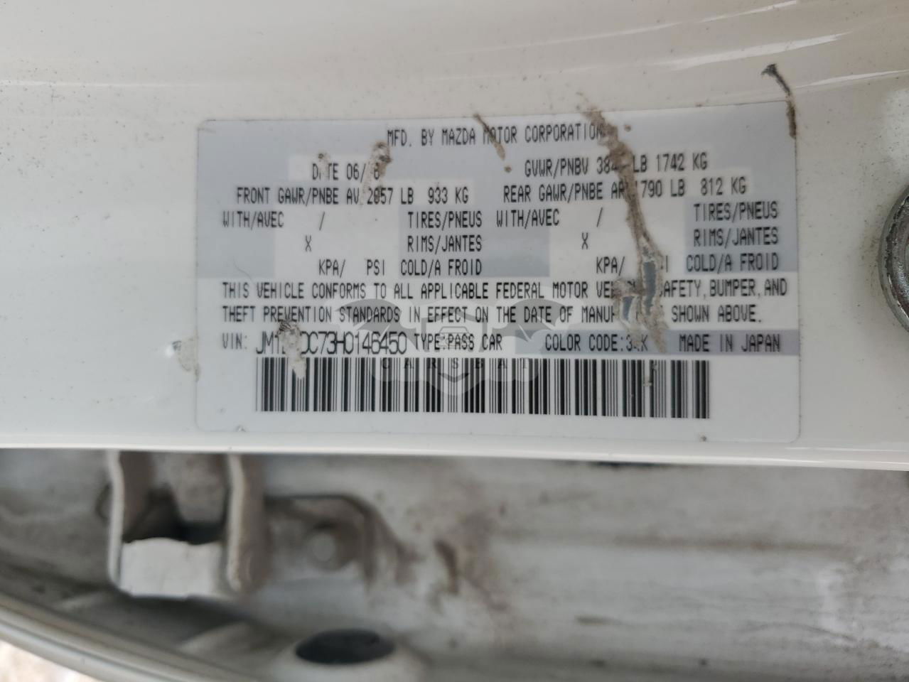 • VIN: JM1DKDC73H0146450