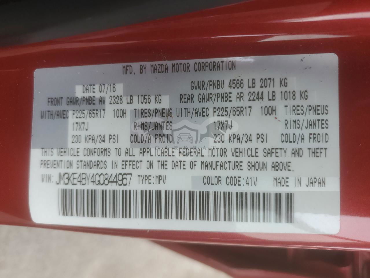• VIN: JM3KE4BY4G0844967