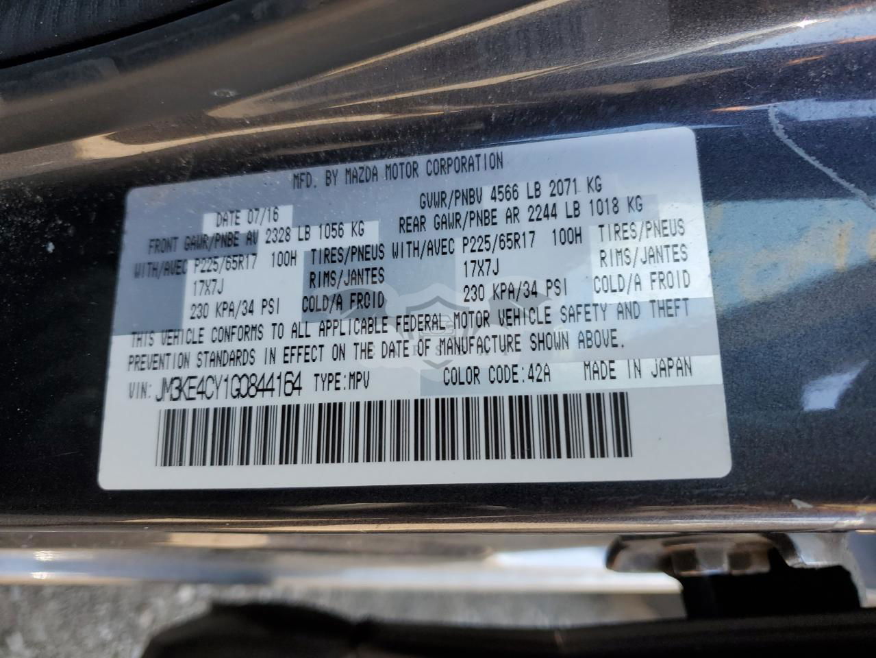 • VIN: JM3KE4CY1G0844164