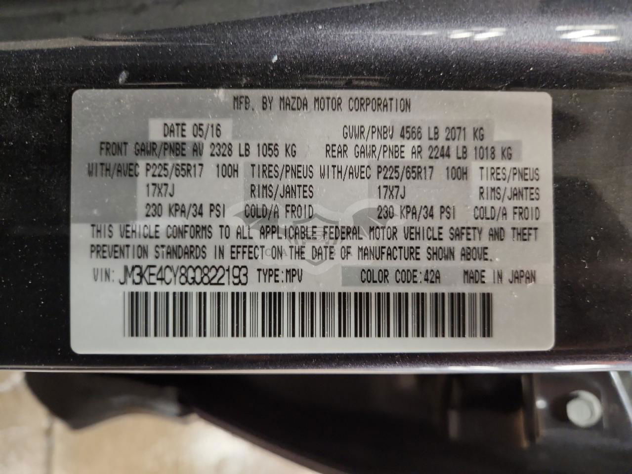 • VIN: JM3KE4CY8G0822193