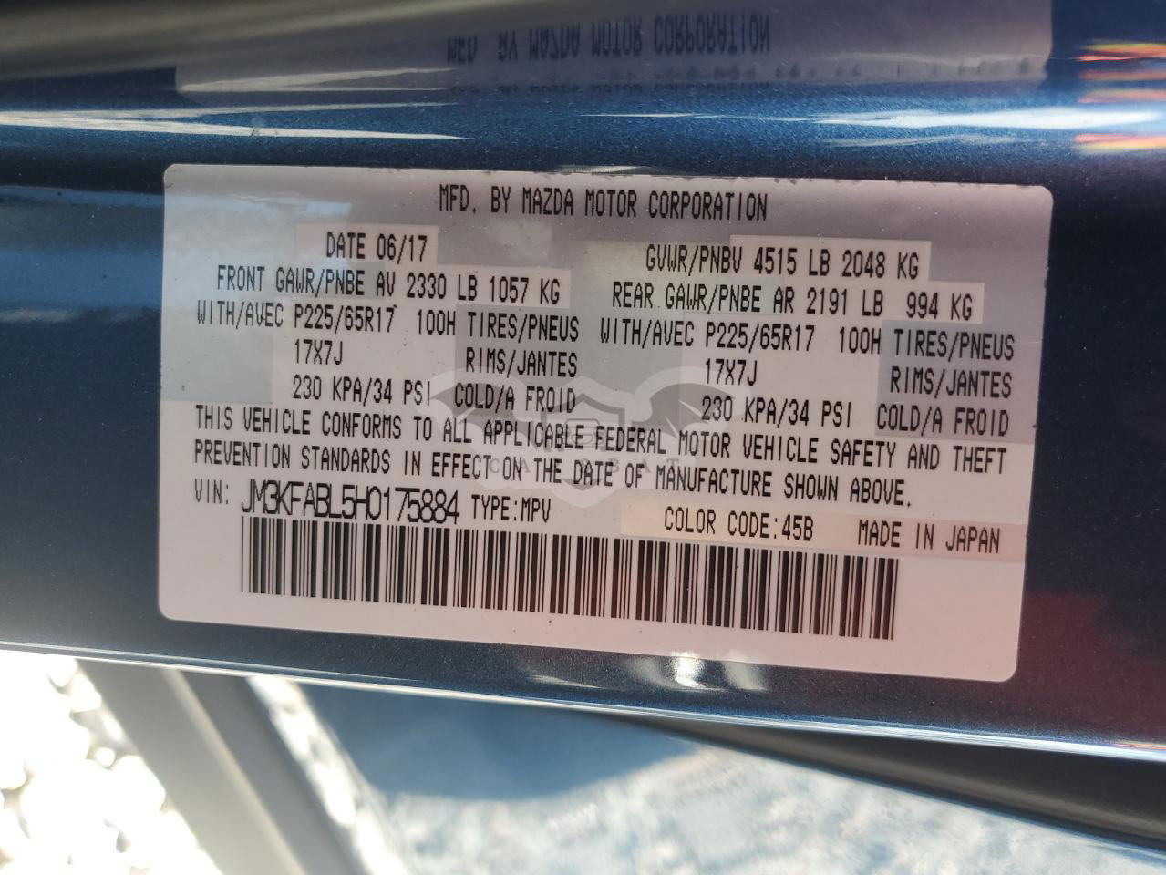 • VIN: JM3KFABL5H0175884