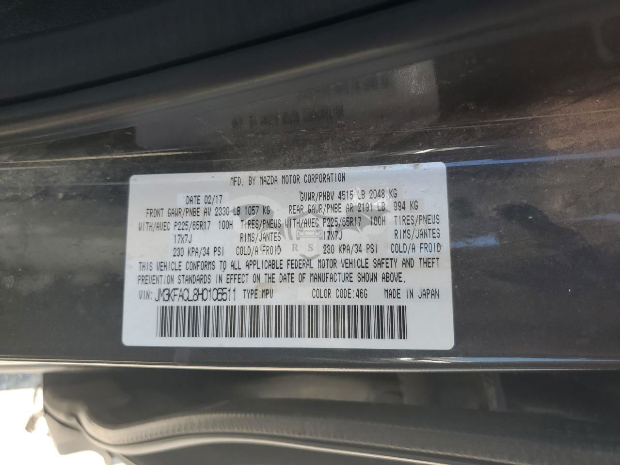 • VIN: JM3KFACL8H0106511