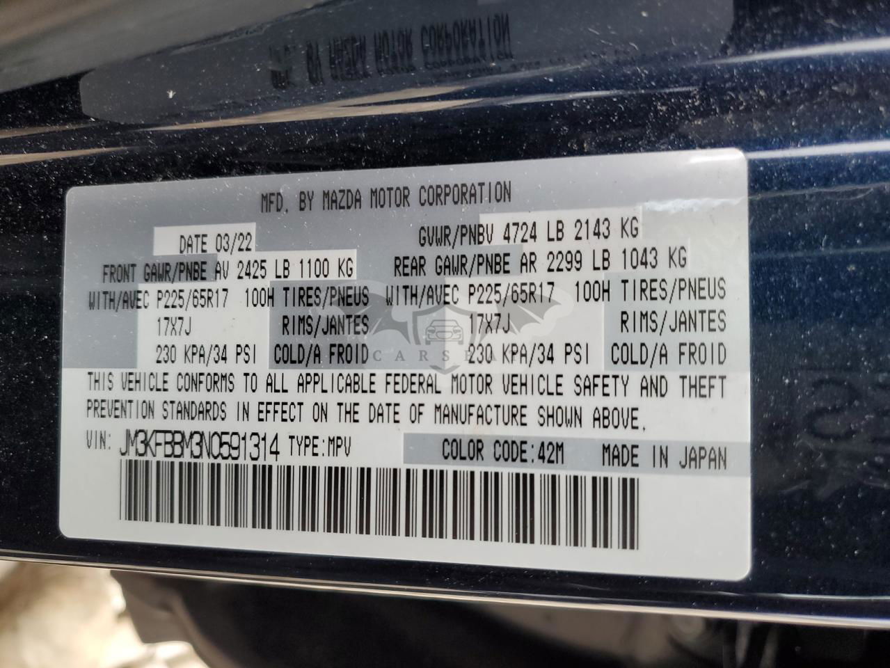 • VIN: JM3KFBBM3N0591314