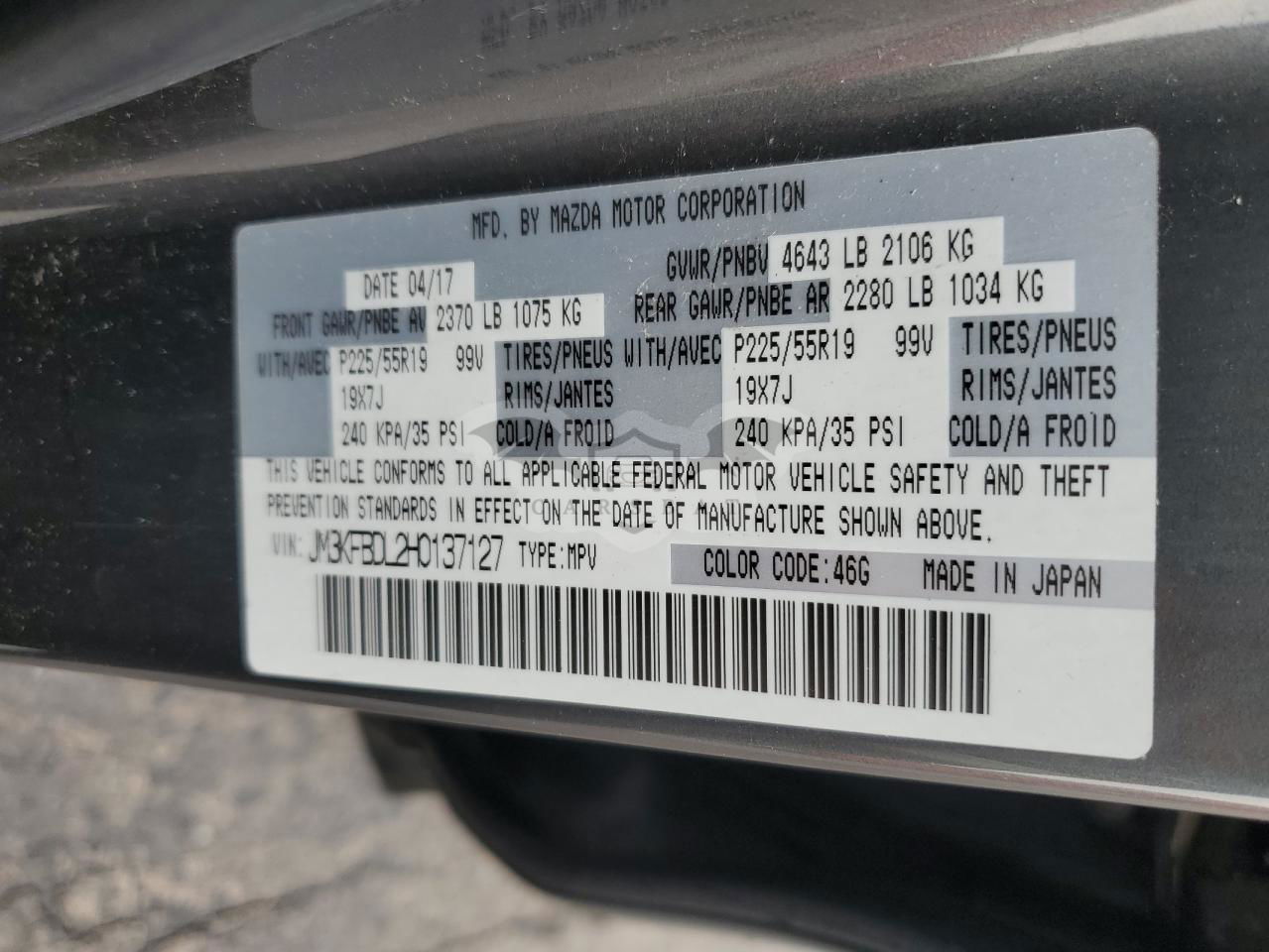 • VIN: JM3KFBDL2H0137127