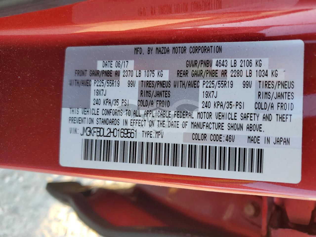 • VIN: JM3KFBDL2H0169561