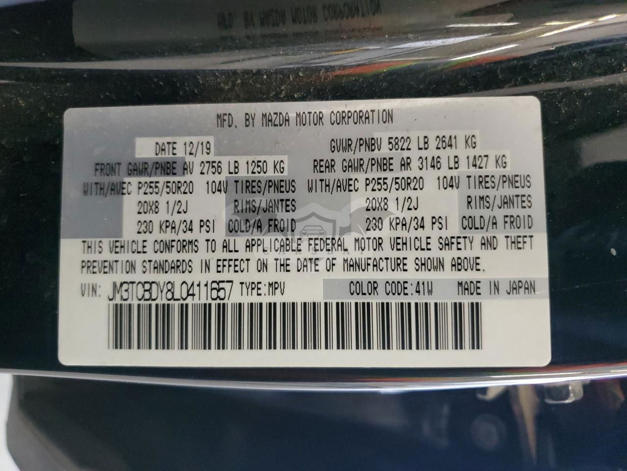 • VIN: JM3TCBDY8L0411657