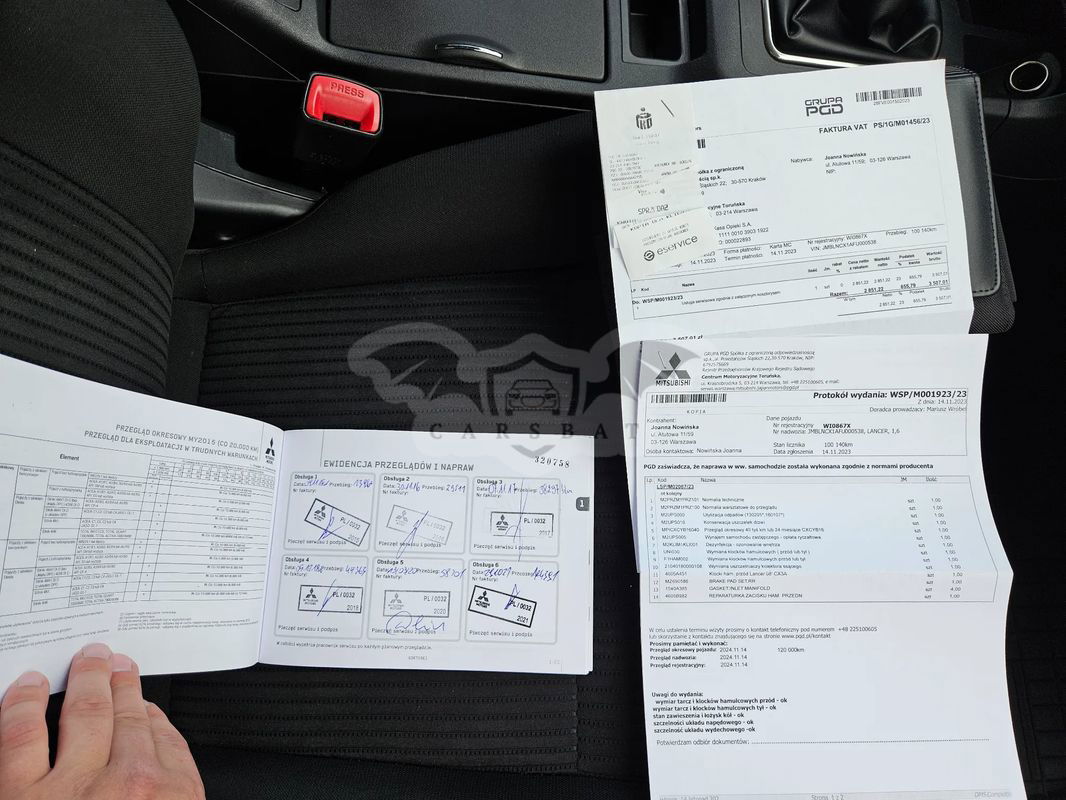Wszystkie zdjęcia znajdują się w serwisie OTOMOTO 35szt. W tym zdjęcia książki serwisowej i ostatniej faktury z ASO. Sprzedam Mitsubishi LANCER 1.6 benzyna. Samochód kupiony pod koniec listopada 2014r w polskim salonie w Warszawie. Od nowości jeden właściciel. Bardzo niski przebieg, który jest udokumentowany historia serwisową z ASO do końca! Auto w 100% bezwypadkowe, wszystkie szyby oryginalne. Samochód jest w stanie celującym. Serwisowany tylko i wyłącznie w autoryzowanym serwisie Mitsubishi. Wszystko udokumentowane książką oraz fakturami. Ostatni przegląd samochodu w ASO był przy 100tys km. Bardzo duży serwis. Wszystko zawsze robione zgodnie z zaleceniami producenta. Wyposażenie: - Kamera Cofania - Nawigacja Automapa - 4x elektryczne szyby - elektryczne lusterka - Skórzana wielofunkcyjna kierownica - Skórzane boczki drzwi - Automatyczna klimatyzacja - Automatyczne Światła - Automatyczne wycieraczki - Czujnik zmierzchu i deszczu - Bluetooth - Telewizja - DVD - ISOFIX -i wiele innych Samochód po sprzedaży zostanie dodatkowo ochroniony pisemną GWARANCJĄ 12 miesięczną na silnik i skrzynie - w CENIE! Na samochód wystawiamy fakturę - kupujący zwolniony z opłaty skarbowej 2% Wyrażam zgodę na sprawdzenie pojazdu w dowolnym warsztacie lub ASO