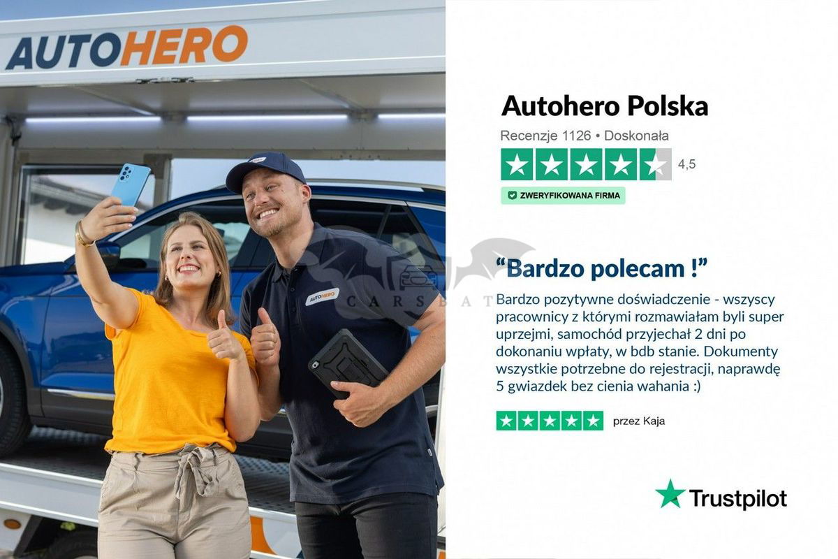 numer identyfikacyjny pojazdu: UF15335 Wyposażenie Mitsubishi ASX 1.6 Edition 100+ 2WD Android Auto Apple CarPlay ESP Felgi aluminiowe Kamera cofania Klimatyzacja automatyczna Podgrzewane przednie fotele Przyciemnione tylne szyby System czyszczenia reflektorów Tempomat Komfort Dzielone tylne siedzenie Elektryczne szyby z przodu i z tyłu Podłokietnik środkowy przedni Regulacja wysokości przedniego lewego siedzenia Regulowana wysokość kolumny kierownicy System wspomagania ruszania pod górę Multimedia Bluetooth Kierownica wielofunkcyjna Komputer pokładowy Odbiór radia cyfrowego (DAB) Radio Zestaw głośnomówiący Światło Czujnik światła/deszczu Elektrycznie ustawiane lusterka Składane lusterka zewnętrzne Tylne światła LED Bezpieczeństwo ABS Asystent hamowania awaryjnego Boczna poduszka powietrzna z przodu Centralny zamek z pilotem Elektryczny rozkład siły hamowania Immobilizer Mocowania Isofix do fotelika dziecięcego Poduszka powietrzna po stronie kierowcy/pasażera Poduszka powietrzna po stronie pasażera może być wyłączona System kontroli ciśnienia w oponach System kontroli trakcji System poduszek powietrznych z przodu System poduszek powietrznych z tyłu głowy Dodatkowe Hak holowniczy Lakier metalik Pokrycie siedziska / tapicerka: tkanina Relingi dachowe Skrzynia 5-biegowa System Start-Stop Wspomaganie kierownicy Odkryj nowy wymiar zakupów samochodów z Autohero! Wejdź na naszą stronę internetową, przeglądaj szeroką gamę dostępnych pojazdów i wybierz swój wymarzony samochód. Złóż zamówienie online, a my dostarczymy auto prosto pod Twoje drzwi – czy to będzie adres domowy, warsztat, czy inne miejsce, gdzie chcesz zweryfikować stan techniczny zakupionego pojazdu, decyzja należy do Ciebie. Z Autohero zakupy są bez ryzyka – oferujemy 21 dni na zwrot auta bez podania przyczyny. Gwarantujemy, że stan techniczny samochodu jest zgodny z opisem. W przypadku jakichkolwiek rozbieżności, zwrócimy Ci pełną kwotę zakupu bez dodatkowych kosztów. Jeśli wciąż masz wątpliwości, zapraszamy pod adres naszego Showroomu Jagiellońska 88b - FSO - Warszawa Tutaj możesz osobiście zobaczyć i przetestować wybrany samochód. Pamiętaj tylko, aby przed wizytą skontaktować się z nami, aby potwierdzić dostępność pojazdu i umówić spotkanie. Nasza infolinia jest do Twojej dyspozycji od poniedziałku do soboty w godzinach 09:00 - 18:00. Doświadcz na własnej skórze, dlaczego zakup samochodu online w Autohero to wybór, który zmienia zasady gry. Zakup Auta - Finansowanie- Rejestracja- Ubezpieczenie - Gwarancja- Dostawa pod dom- Zakup kół- INNE Autohero wspiera kampanię Sprawdzony/Niekręcony, która ma na stałe zmienić obraz polskiego rynku handlu używanymi samochodami i wprowadzić do powszechnej praktyki pisemną „gwarancję przebiegu”. Wszystkie firmy biorące udział w Kampanii będą deklarować , że sprzedawane przez nich używane auta są sprawdzone i mają „gwarancję przebiegu”. Jeśli klient na podstawie zasad z regulaminu akcji udowodni, że samochód miał przed transakcją cofnięty licznik, to sprzedawca auta będzie musiał nie tylko zwrócić mu pieniądze za samochód (co wynika w większości przypadków przepisów prawa), ale także zapłacić karę umowną w wysokości 1000 złotych. Niniejsze ogłoszenie ma charakter informacyjny i nie stanowi oferty handlowej w rozumieniu art. 66 § Kodeksu cywilnego. Autohero zastrzega sobie prawo do wprowadzenia zmian oraz korekt ewentualnych omyłek.