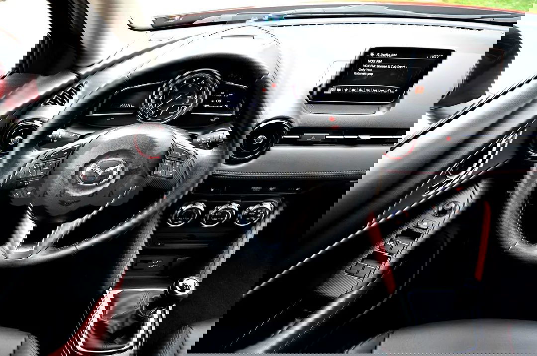 Czerwony Mazda CX-3 2.0 Skypassion 2016 roku | Benzyna
