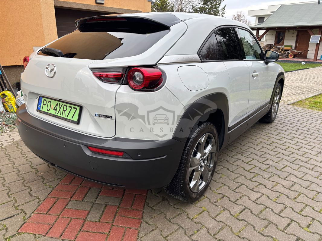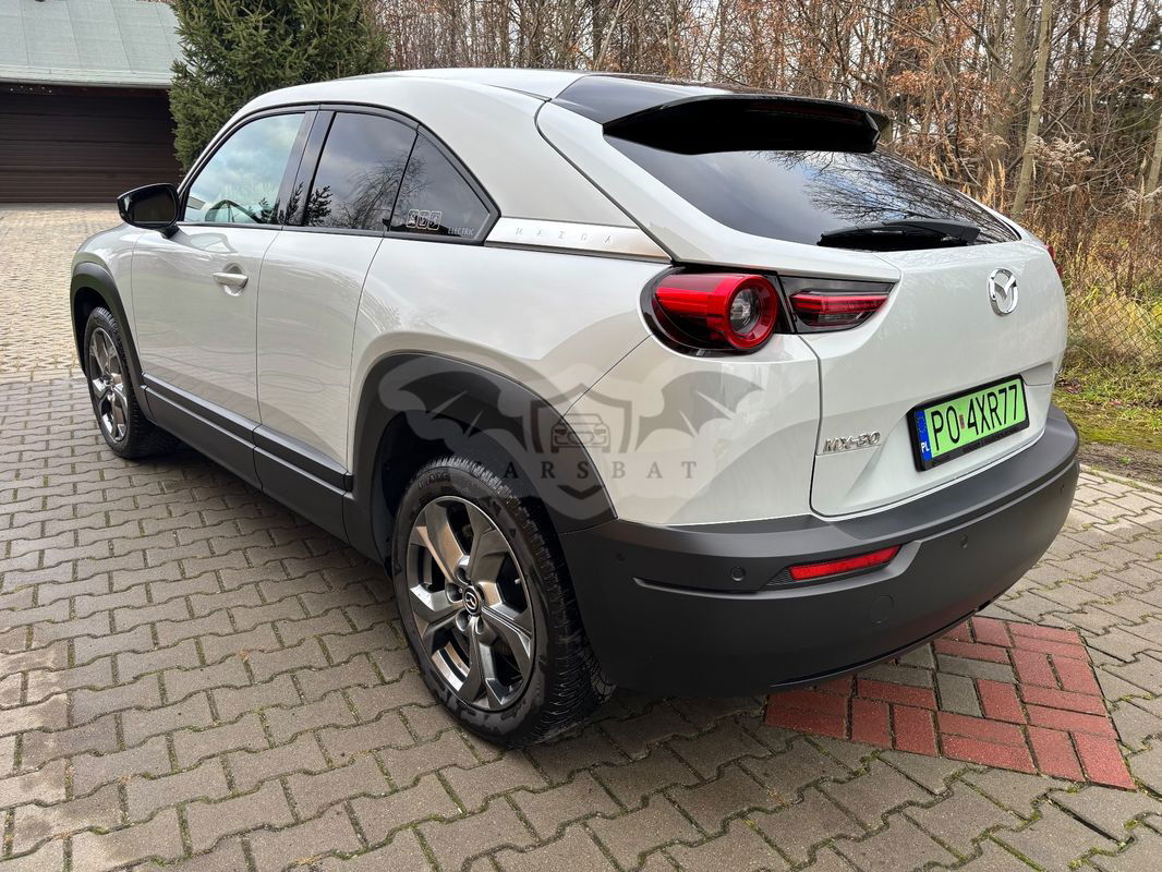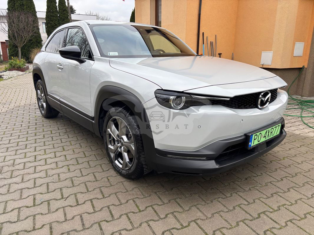 Witam Na sprzedaż posiadam elektryczną Mazdę MX-30, najbogatsza wersja wyposażenia Enso, kolor biały metalik. W skład wyposażenia wchodzą: asystenci jazdy: aktywny tempomat, utrzymanie pasa ruchu, asystent martwego pola, awaryjne hamowanie auta, system kontroli podczas cofania, oprócz tego podgrzewane fotele przednie oraz kierownica, elektryczny fotel kierowcy z pamięcią ustawień, światła LED z automatycznymi światłami drogowymi wycinającymi pojazd jadący z naprzeciwka, nagłośnienie Bose, wyświetlacz Head-Up, kamery 360 i wiele innych opcji. Dodatkowo jako opcjonalne wyposażenie dołożony został szyberdach, aluminiowe nakładki na pedały oraz dodatkowe oświetlenie LED przestrzeni na nogi, schowków drzwi oraz schowka w tunelu środkowym. Auto co rok serwisowane w ASO Mazdy, nigdy nie brało udziału w kolizji i wypadku. Nie było naprawiane blacharsko i mechanicznie. Elementy skórzane tapicerki oraz tworzywa sztuczne dwa razy do roku zabezpieczane odpowiednimi środkami. Możliwość sprawdzenia auta w serwisie lub na stacji diagnostycznej. Auto użytkowane prywatnie, nie przez firmę.