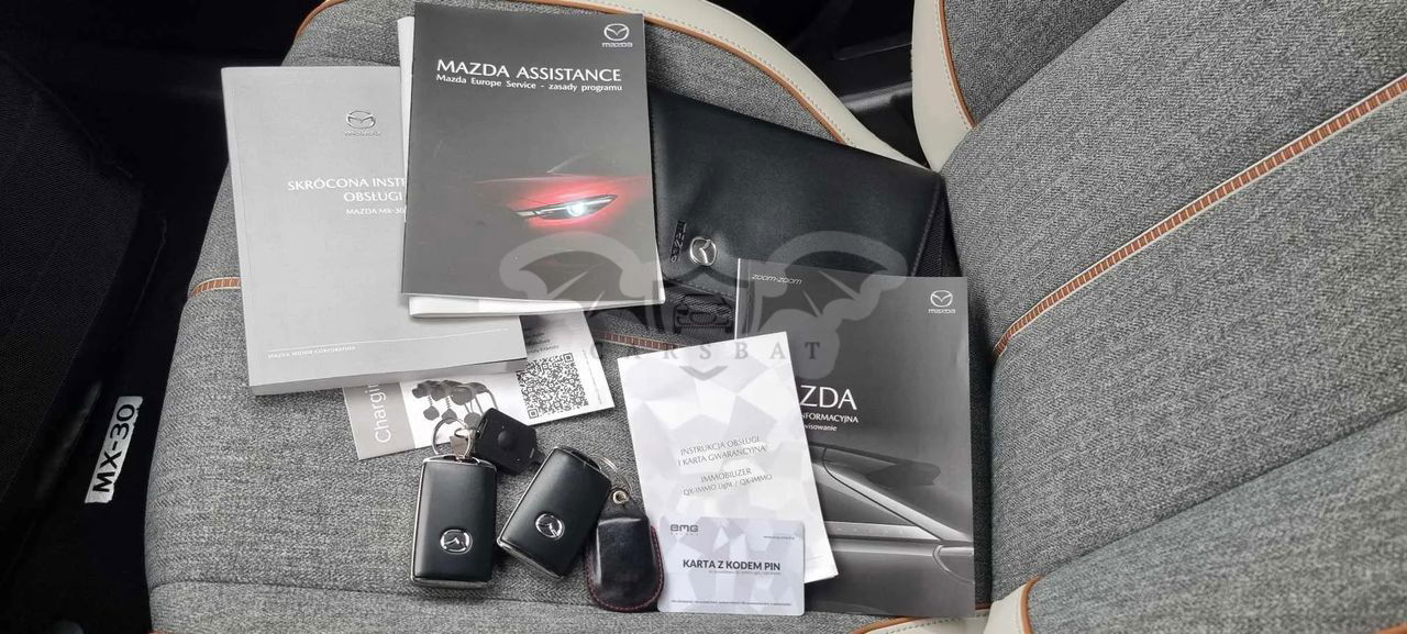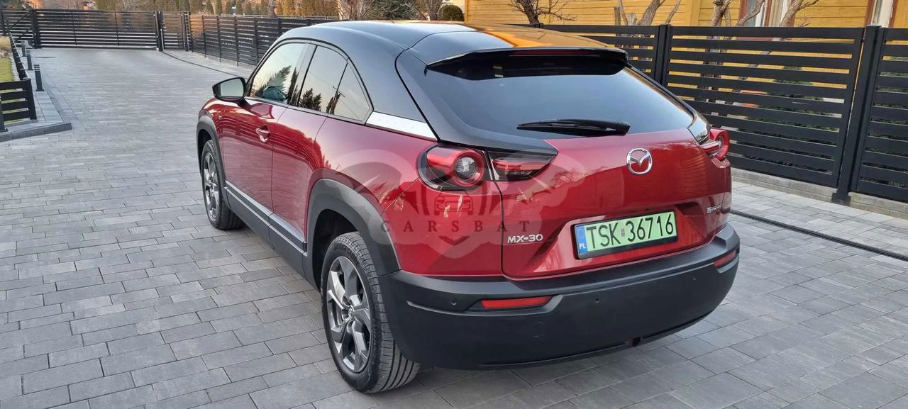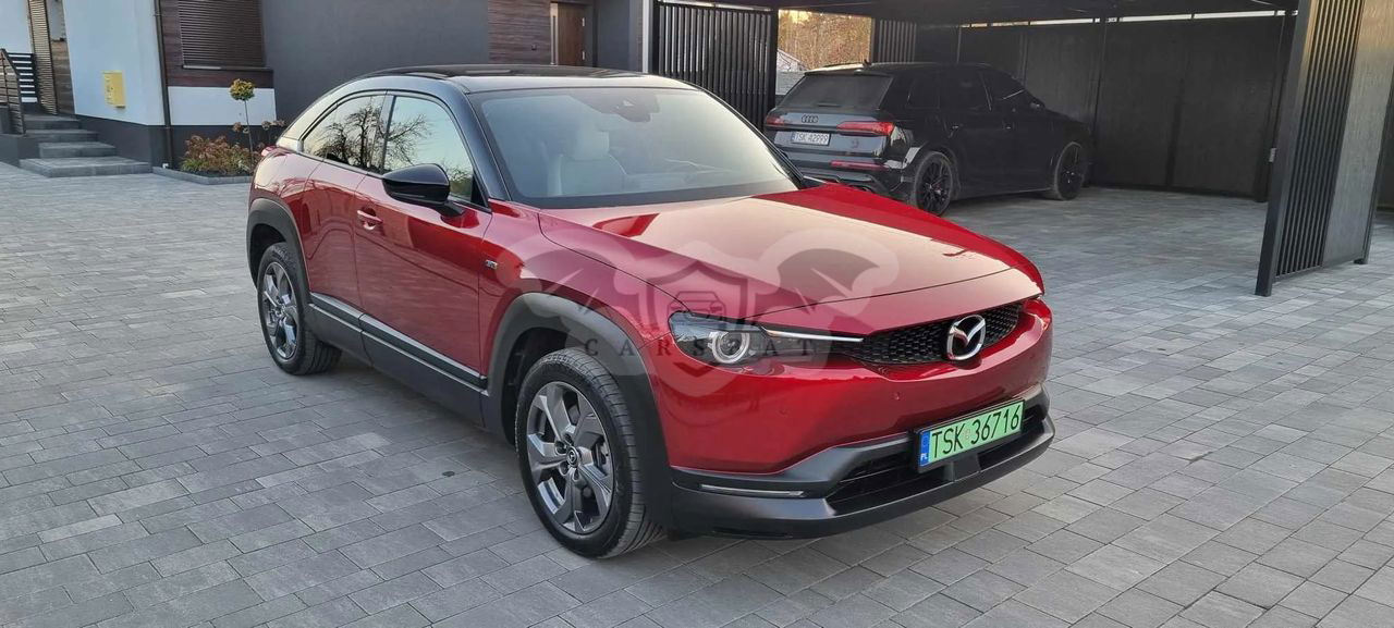 Do sprzedania MAZDA MX-30 EV E-Skyactive z 2022r Samochód pochodzi z Polskiego Salonu, został zakupiony we wrześniu 2022r Użytkowany przez jednego właściciela od nowości. Bezwypadkowy z Oryginalnym przebiegiem 9.961km! Auto w bardzo bogatej wersji wyposażenia MAKOTO, poszerzonej o pakiet MODERN. Posiada m.in. KeyLessGo (bezkluczykowy dostęp), system Start-Stop, rozpoznawanie znaków, HEAD UP, Nawigacje, elektryczne oraz podgrzewane fotele oraz lusterka, podgrzewaną kierownice, kamerę, aktywny tempomat i wiele innych. Kolor perła Soul Red Crystal. Dodatkowo w Salonie zamontowano QX-IMMO. Gwarancja Producenta na pojazd 6lat (do września 2028r), na baterię 8 lat (do września 2030r) lub do 160.000km. Dwa tryby ładowania: normalne (AC) oraz szybkie (DC). Aktualne badania techniczne oraz ubezpieczenie OC/AC. Komplet dokumentów oraz kluczyków/pilotów. Wystawiam Fakturę VAT 23%, cena Brutto. Więcej informacji udzielę telefonicznie.