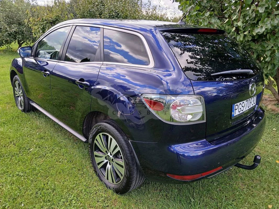 MAZDA CX-7 2010 2.2 diesel 173KM + napędy 4x4, ZAREJESTROWANY w Polsce. Bogata wersja wyposażenia z kamerą cofania, podgrzewanymi fotelami przednimi oraz dodatkami chrom. MOŻLIWA ZAMIANA NA TAŃSZE AUTO DO MAX 10TYS.ZŁ. Rok produkcji 2010, I rejestracja 05.2010. ZAREJESTROWANY i UBEZPIECZONY W POLSCE. Ważne badanie techniczne do 05.2025 i ubezpieczenie OC do 05.2025. Auto w bardzo dobrym stanie wizualnym oraz technicznym. Zawieszenie i układ kierowniczy bez zarzutów. Silnik i skrzynia pracują bardzo ładnie. Klimatyzacja sprawna. Skrzynia biegów MANUALNA 6-biegowy. Napędy automatyczne 4x4. Bardzo ładny kolor GRANATOWA PERŁA METALIC. Pełna dokumentacja (przebieg udokumentowany) - książki serwisowe, instrukcje, 2 kluczyki, dowód rejestracyjny, polisa OC. Nowe tarcze hamulcowe oraz klocki przód i tył. Nowe stabilizatory przód i tył. Opony 18 w bardzo dobrym stanie. Wyposażenie: Klimatyzacja 2-strefowa z nawiewem Przednie fotele podgrzewane HAK HOLOWNICZY KAMERA COFANIA Airbag kierowcy i pasażera + boczne airbag w fotelach + kurtyny dachowe Elektryczne szyby przód + tył TEMPOMAT Elektrycznie ustawiane lusterka boczne + podgrzewanie fabrycznie przyciemniane tylne szyby boczne ABS+ESP radio z systemem głośnomówiącym BLUETOOTH Centralny zamek + pilot Wspomaganie kierownicy Zderzaki, klamki, lusterka w kolorze nadwozia Dodatkowe listwy CHROM ALUMINIOWE FELGI 18'' oraz wiele - wiele innych dodatków. Auto ZAREJESTROWANE i ubezpieczone w Polsce. Cały czas użytkowane. MOŻLIWA ZAMIANA NA TAŃSZE AUTO DO MAX 10TYS.ZŁ. Więcej zdjęć znajduje się na otomoto.pl Więcej info tel., whatsapp, mail. 63-800 Gostyń woj. wielkopolskie 35 km od Leszno 75 km od Poznań 100 km od Wrocław 300 km od Warszawa