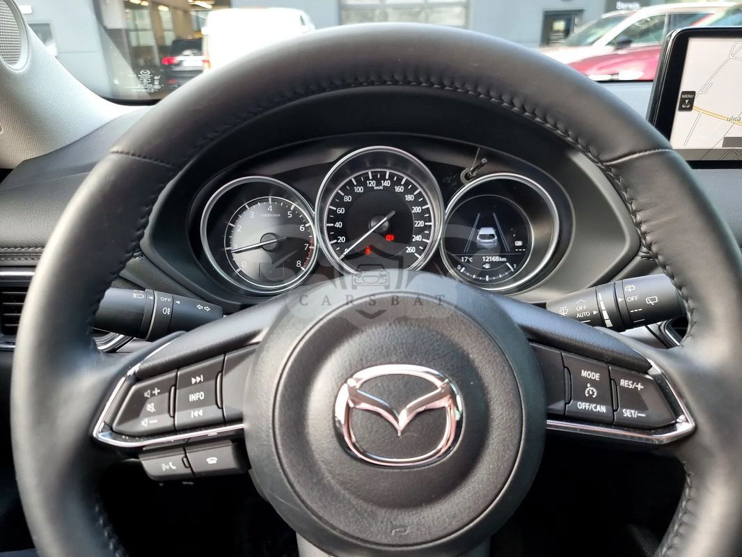 Autoryzowany Dealer Mazda BMG Goworowski ma do zaoferowania: Mazda CX-5 2023 5dr SUV 2.0L e-SKYACTIV G 165KM 6MT 4x2 CENTER-LINE PLUS Silnik 2.0 Benzyna Moc 165 KM Skrzynia 6 MT Lakier: SOUL RED CRYSTAL Samochód jest na gwarancji fabrycznej do 03/2030 lub 150000 km Mariusz Kałucki, Doradca ds. samochodów używanych ☎ kom: +48 734 17 19 04 e-mail: mariusz.kalucki(at)mazdagdynia.pl Mateusz Marciniak, Doradca ds. samochodów używanych ☎ kom: +48 , e-mail: mateusz.marciniak(a)mazdagdynia.pl ● ABS ● Alarm ● Bluetooth ● Czujnik deszczu ● Czujnik zmierzchu ● Czujniki parkowania, przód i tył ● Dostęp bezkluczykowy ● EBA - system wspomagania hamowania awaryjnego ● EBD - elektroniczny rozdział siły hamowania ● Elektrycznie sterowane szyby przednie i tylne ● Felgi aluminiowe 17 z ogumieniem 225/65 ● Fotel kierowcy z regulacją odcinka lędźwiowego ● Fotele przednie podgrzewane ● Hamulec postojowy elektromechaniczny z funkcją Autohold ● Immobilizer ● Kamera cofania ● Kierownica i dźwignia zmiany biegów pokryte skórą ● Kierownica podgrzewana ● Klimatyzacja automatyczna, dwustrefowa ● Komputer pokładowy ● Kurtyny powietrzne ● Lakier specjalny ● Lampy przednie LED ● Lampy tylne LED ● Lusterka boczne regulowane elektrycznie, ogrzewane ● Lusterko wsteczne fotochromatyczne ● Nawiew na tylny rząd siedzeń ● Oparcie tylnej kanapy z regulowanym kątem nachylenia ● Oświetlenie schowka przed pasażerem LED ● Oświetlenie wewnętrzne LED ● Poduszki powietrzne boczne ● Poduszki powietrzne przednie ● Porty USB-C szt.4 ● System audio (6 głośników) ● System automatycznego przełączania śwtateł drogowych na mijania (HBC) ● System monitorowania ciśnienia w ogumieniu TPMS ● System monitorowania martwego pola BSM ● System monitorujący ruch poprzeczny przy cofaniu (RCTA) ● System multimedialny HMI ● System nawigacji Mazda i Apple CarPlay ● System rozrywki i łączności - MZD Connect ● System wspomagający awaryjne hamowanie przy jezdzie do przodu (SCBS) ● System wspomagający utrzymanie pojazdu w pasie ruchu (LAS) ● Szyby boczne tylne i szyba tylna przyciemniane ● Światła LED do jazdy dziennej ● TCS - system kontroli trakcji ● Tempomat ● Tuner radia cyfrowego ● Wskaźnik niskiego poziomu płynu do spryskiwaczy ● Wyświetlacz centralny 10.25 cali ze sterowaniem dotykowym ● Zamek centralny z pilotem ● Zestaw głośnomówiący Bluetooth ● Zestaw naprawczy opony z kompresorem 12V lakierowany błotnik tył (odprysk) BMG Goworowski Autoryzowany dealer Mazda, Mercedes, Smart, AMG ul. Łużycka 9, Gdynia pon.-pt. 9:00-18:00 sob: 9:00-15:00