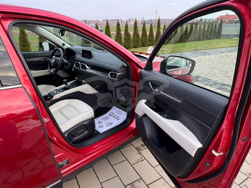 ARTCAR Salon sprzedaży samochodów używanych. ***ZAPRASZAMY DO ZAPOZNANIA SIĘ Z NASZĄ OFERTĄ *** Mazda CX-5 2.2 Skyactiv-D Skypassion 184KM 4WD ✔️ SERWISOWANY Z AUTENTYCZNYM PRZEBIEGIEM ✔️ POCHODZI Z POLSKIEGO SALONU ✔️ BEZWYPADKOWY Rok prod. 2019 Salon Polska -Pierwszy Właściciel Silnik Diesel 2.2 o mocy 184KM połączony z manualną skrzynią biegów. Bardzo bogata wersja wyposażenia: * System Apple Carplay/AndroidAuto * Cyfrowe zegary * Czujniki: martwego pola/deszczu/zmierzchu/dalmierz * Podgrzewanie piór wycieraczek + spryskiwacze reflektorów * Adaptacyjne matrycowe reflektory full LED z automatycznym doświetlaniem * Przezierny kolorowy wyświetlacz na szybę czołową * Tempomat adaptacyjny (ACC) z radarem * Kamery 360 stopni: przód, tył, boki * Ffotele elektryczne z funkcją pamięci dla kierowcy * Wentylowane siedziska przednie * Podgrzewane fotele przednie i tylne + podgrzewana kierownica * Elektryczna klapa bagażnika * Felgi 19 cali (Chrome Shadow) i wiele innych Posiada dwa kluczyki, książkę serwisową i komplet instrukcji czyli wszystko jak przy nowym samochodzie. Sprzedaż na fakturę VAT 23 %. Podana cena w ogłoszeniu brutto. Kupujący zwolniony z opłaty skarbowej 2%. Samochód jest po wizycie w serwisie gdzie odbył przegląd: 2024/09/13 przy 119011 KM • Przegląd okresowy / Pióra wycieraczek / gumki / Płyn hamulcowy - wymiana / Filtr paliwa / Filtr pyłkowy / Filtr powietrza / Bateria pilota Poniżej udostępniamy dane do sprawdzenia Centralnej Ewidencji Pojazdów Numer rej. WPR 7465G Data I rej. 20.11.2019 Nr. VIN: JMZKFGW2600822435 UDOSTĘPNIAMY MOŻLIWOŚĆ SPRAWDZENIA SAMOCHODU NA DOWOLNEJ STACJI DIAGNOSTYCZNEJ LUB ASO. Zapewniamy możliwość zakupu samochodu w pełni online z dostawą do domu na terenie Polski Oferujemy atrakcyjne warunki finansowania w postaci leasingu lub kredytu. Nie wymaga wkładu finansowego. Wnętrze czyste, jak nowe, nigdy nie było w nim palone. Jest również możliwość pozostawienia swego samochodu w rozliczeniu, rzetelna wycena i na pewno docenimy dobry stan twego samochodu. x5x1x1x4x2x6x7x9x2x Więcej informacji przez telefon lub