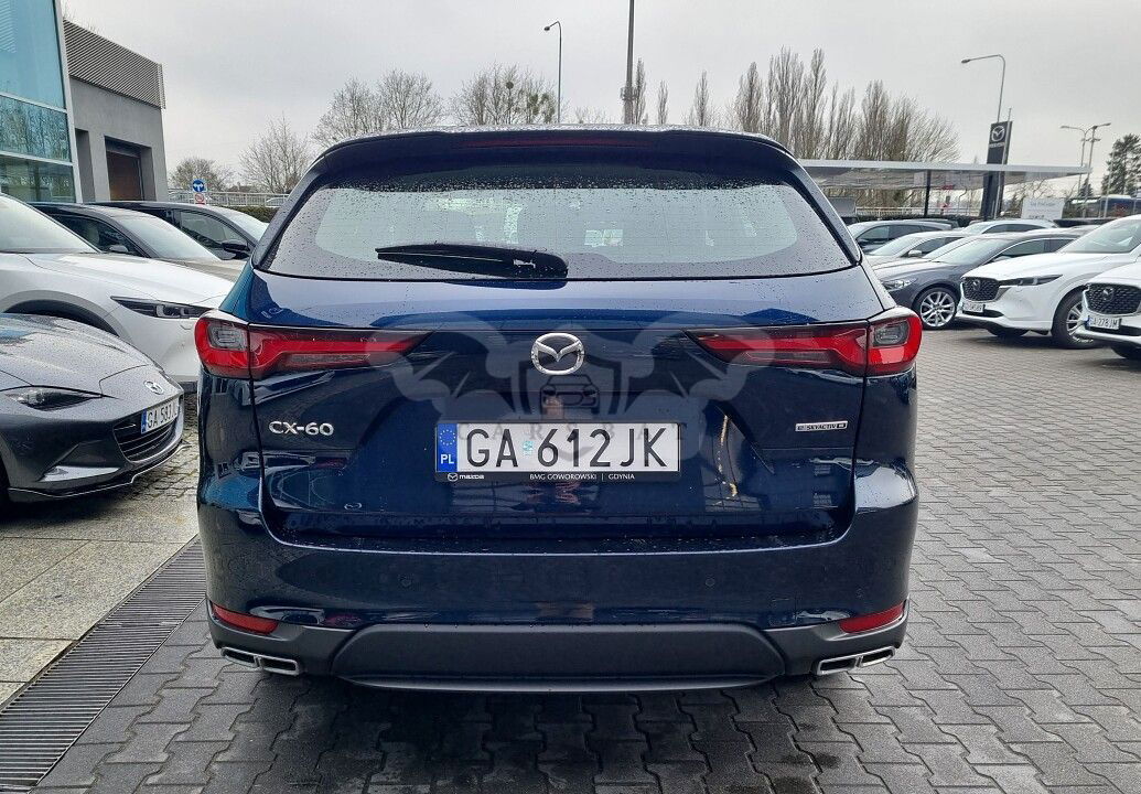 Mazda CX-60 5dr SUV 3.3L e-SKYACTIV D 200KM 8AT 4x2 Exclusive-line (+ pakiet Driver) 46G (Machine Gray) Samochód jest na gwarancji fabrycznej do 07/03/2029 lub 150000 km Mateusz Marciniak, koordynator ds. samochodów używanych ☎ kom: +48 , e-mail: mateusz.marciniak(a)mazdagdynia.pl Mariusz Kałucki, Doradca ds. samochodów używanych ☎ kom: +48 734 17 19 04 e-mail: mariusz.kalucki(at)mazdagdynia.pl Używana Mazda CX-60 PHEV z programu SKYSELECTION - YouTube ● 8 głośników ● Alarm ● Aplikacja MyMazda - pakiet darmowych usług połączonych ● Apple Carplay i Android Auto ● Czujnik ciśnienia w oponach ● Czujnik deszczu ● Czujnik zmierzchu ● Czujniki parkowania, przód i tył ● Felgi aluminiowe 20 z ogumieniem 235/50 ● Fotel kierowcy regulowany w 8 płaszczyznach ● Fotel pasażera regulowany w 6 płaszczyznach ● Fotele przednie podgrzewane ● Funkcja Auto Hold ● Gniazdo 12V ● Gniazdo USB-C (2x) - przód ● Gniazdo USB-C (2x) - tył ● Kamera cofania ● Kanapa tylna dzielona 40:20:40 ● Kierownica i dźwignia zmiany biegów pokryte skórą ● Kierownica podgrzewana ● Klimatyzacja automatyczna, dwustrefowa ● Kurtyny powietrzne ● Lusterka boczne regulowane elektrycznie, ogrzewane ● Lusterka boczne składane elektrycznie ● Łopatki do zmiany biegów ● Nawiew na tylny rząd siedzeń ● Oświetlenie KODO - przód i tył ● Oświetlenie podłogi w I rzędzie ● Oświetlenie przedniej konsoli ● Oświetlenie wewnętrzne LED ● Poduszka powietrzna kolanowa kierowcy ● Poduszki powietrzne boczne, przód ● Poduszki powietrzne boczne, tył ● Poduszki powietrzne przednie ● Reflektory przednie, diodowe LED ● Schowek, podświetlany ● Smart Keyless ● Spryskiwacze reflektorów ● System automatycznego hamowania SCBS (zapobiegający kolizjom przy małych prędkościach) ● System automatycznego włączania świateł drogowych (HBC) ● System e-Call - system powiadamiania ratunkowego ● System intelignentnego wspomagania hamowania -SBS ● System monitorowania martwego pola BSM ● System monitorujący ruch poprzeczny przy cofaniu (RCTA) ● System multimedialny HMI ● System ostrzegania przed niezamierzoną zmianą pasa ruchu (LDW) ● System rozpoznający znaki ograniczenia prędkości -TSR ● System wspomagający ruszanie na wzniesieniu ● System wspomagający utrzymanie pojazdu w pasie ruchu (LAS) ● System wykrywający znużenie kierowcy - Driver Alert ● Światła LED do jazdy dziennej ● Tapicerka materiałowa ● Tempomat ● Tuner radia cyfrowego ● Wybór trybu jazdy ● Wycieraczki przedniej szyby podgrzewane ● Wyświetlacz centralny 12.3 cali ● Wyświetlacz Head-up (na przedniej szybie) ● Zegary cyfrowe Pakiet Driver Assistance : Przednie matrycowe reflektory diodowe (LED) System monitowania ruchu poprzecznego przed pojazdem (FCTA) Monitorowanie ruchu poprzecznego przy cofaniu (RCTB) (kamera cofania z linią dynamiczną zamiast statycznej) System wspomagający hamowanie podczas cofania (SCBS-R) Adaptacyjny układ utrzymywania stałej prędkości (MRCC) z asystentem wolnej jazdy w ruchu ulicznym Tempomat adaptacyjny (i-ACC) System wspomagający jazdę z przyczepą Elektrycznie otwierana klapa bagażnika (z funkcją bezdotykową) Gniazdo 150 W oraz 1500 W -Ładowarka indukcyjna