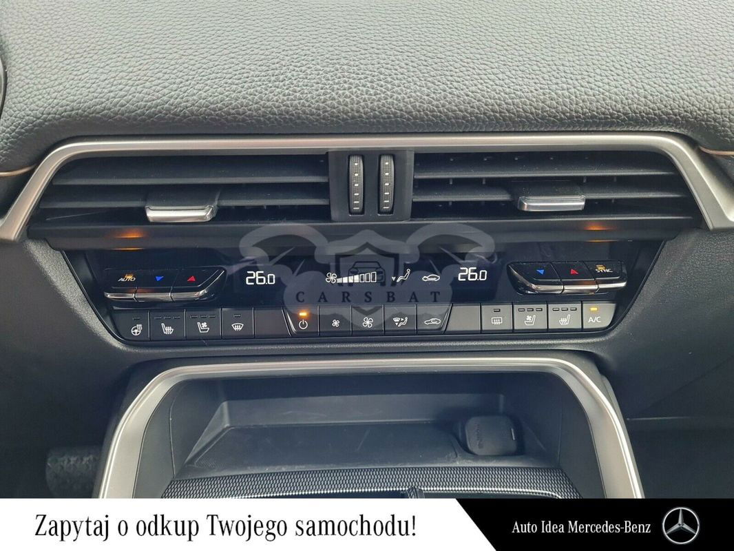 Skorzystaj z programu wymiany, który polega na odkupie dotychczasowego samochodu. Jego wartość stanowi wkład przy zakupie kolejnego dowolnego auta używanego lub nowego. Zajmujemy się kupnem i sprzedażą pojazdów różnych marek. Ocenę stanu technicznego otrzymasz przed sprzedażą samochodu. Szeroka oferta finansowania zakupu pojazdu przy współpracy z Mercedes-Benz Leasing, PKO BP oraz Santander. Mercedes-Benz Certified. Certyfikowane samochody używane — nasza gwarancja jakości. Oferta obejmuje maksymalnie 6-letnie samochody osobowe Mercedes-Benz o przebiegu do 160 000 kilometrów. Tylko samochody, które pomyślnie przeszły kontrolę stanu technicznego, mogą uzyskać nasz certyfikat. Nasze używane samochody Mercedes-Benz Certified wyróżniają się również dodatkowymi obietnicami oraz dalszymi atrakcyjnymi zaletami. Odkryj je wszystkie!! B E Z P I E C Z E Ń S T W O • Przednie, centralne, boczne (z przodu i z tyłu) i kurtynowe poduszki powietrzne • Poduszka kolanowa dla kierowcy • Czujnik ciśnienia w ogumieniu • Inteligentne wspomaganie hamowania (SBS) • Układ wspomagający awaryjne hamowanie przy jeździe do przodu (SCBS) • System wykrywający pojazdy w martwym punkcie (BSM) • System wykrywający ruch poprzeczny podczas cofania (RCTA) • System wykrywający znużenie kierowcy (Driver Alert) • System rozpoznający znaki ograniczenia prędkości (TSR) • System wspomagający utrzymanie pojazdu w pasie ruchu (LDWS / LKA) • Wspomaganie ruszania na wzniesieniu • Czujniki parkowania (tył) • Czujniki parkowania (przód) • Kamera cofania • E-Call (system powiadamiania ratunkowego) • Automatyczne włączanie świateł drogowych (HBC) • System rozpoznawania twarzy (Driver Monitor) z funkcją pamięci ustawień (dotyczy wersji e-SKYACTIV D) • Lusterka zewnętrzne z pamięcią ustawień (dotyczy wersji e-SKYACTIV D) • System dostosowania optymalnej pozycji za kierownicą (dotyczy wersji e- SKYACTIV D) E L E M E N T Y Z E W N Ę T R Z N E • Obręcze aluminiowe 20" Black • Światła do jazdy dziennej LED • Reflektory przednie LED • Spryskiwacze reflektorów • Oświetlenie KODO (przednie i tylne) • Spoiler dachowy • Listwy wokół okien w kolorze czarnym • Lakierowane zderzaki i nadkola • Lusterka boczne regulowane elektrycznie, automatycznie składane i podgrzewane E L E M E N T Y W E W N Ę T R Z N E • Tapicerka skórzana w kolorze czarnym • Oświetlenie ambientowe • Boczki drzwi obszyte ekologiczną skórą • Fotel kierowcy regulowany w 8 kierunkach • Fotel pasażera regulowany w 6 kierunkach • Elektryczna regulacja fotela kierowcy i pasażera (w 10 kierunkach) (dotyczy wersji e-SKYACTIV D) • Fotele przednie wentylowane (dotyczy wersji e-SKYACTIV D) • Fotele w II rzędzie podgrzewane (dotyczy wersji e-SKYACTIV D) • Skórzana kierownica i drążek zmiany biegów • Drugi rząd siedzeń dzielony 40:20:40 • Oświetlenie wewnętrzne LED • Oświetlenie przedniej konsoli • Oświetlenie podłogi w I rzędzie • Oświetlenie podłogi w II rzędzie • Pokrywa przestrzeni bagażowej • Podświetlany schowek K O M F O R T • Klimatyzacja automatyczna dwustrefowa • Nawiewy dla II rzędu siedzeń • Kolorowy, dotykowy wyświetlacz centralny 12,3" • System sterowania multimediami HMI • Wyświetlacz projekcyjny head-up na przedniej szybie • Cyfrowe zegary (12,3") • Przycisk do uruchamiania silnika • Smart Keyless • Tempomat • Łopatki do zmiany biegów • Elektryczna regulacja kolumny kierownicy (dotyczy wersji e-SKYACTIV D) • Auto Hold • Czujnik deszczu (automatyczne wycieraczki) • Czujnik zmierzchu (automatyczne światła mijania) • Wybór trybu jazdy • Podgrzewanie pozycji wycieraczki • Podgrzewana kierownica • Podgrzewane fotele w I rzędzie • System ułatwiający wsiadanie i wysiadanie kierowcy (dotyczy wersji e-SKYACTIV D) A U D I O • 4 porty USB-C (2 w przedniej konsoli oraz 2 w II rzędzie) oraz dwa gniazda 12V • Radio FM oraz DAB • 8 głośników • Zestaw głośnomówiący Bluetooth • Interfejs bezprzewodowy Apple Carplay / Android Auto I N N E • Usługi połączone • Tryb OFF-ROAD • Siatka w przestrzeni bagażowej • Alarm • Ładowanie 2-fazowe o mocy 7,2 kW (dotyczy wersji PHEV) • Zdalne zarządzanie klimatyzacją (za pomoca aplikacji MyMazda) (dotyczy wersji PHEV) • Przewód do ładowania (Typ 2 - wtyczka domowa) (dotyczy wersji PHEV) • Przewód do ładowania (Typ 2 - Typ 2) (dotyczy wersji PHEV) O P C J E • Pakiet Driver assistance • Przednie matrycowe reflektory diodowe (LED) • System monitorujący ruch poprzeczny przed pojazdem (FCTA) • System monitorujący ruch poprzeczny przy cofaniu z funkcją hamowania (RCTB) • System wspomagający hamowanie podczas cofania (SCBS-R) • Adaptacyjny układ utrzymywania stałej prędkości (MRCC + CTS) • i-ACC (i-Adaptive Cruise Control) • System wspomagający jazdę z przyczepą • Lusterko zewnętrzne samościemniające • Lusterko wewnętrzne samościemniające Niniejsze ogłoszenie jest wyłącznie informacją handlową i nie stanowi oferty w myśl art. 66, §1. Kodeksu Cywilnego. Sprzedający nie odpowiada za ewentualne błędy lub nie aktualność ogłoszenia. Niniejsza oferta nie jest wiążąca. Zastrzega się możliwość wcześniejszej sprzedaży. Uzgodnienie właściwości oraz ceny pojazdu następuje w umowie sprzedaży pojazdu zawieranej z autoryzowanym dealerem Mercedes-Benz. W celu uzyskania szczegółowych informacji na temat pojazdu skontaktuj się z naszym doradcą.