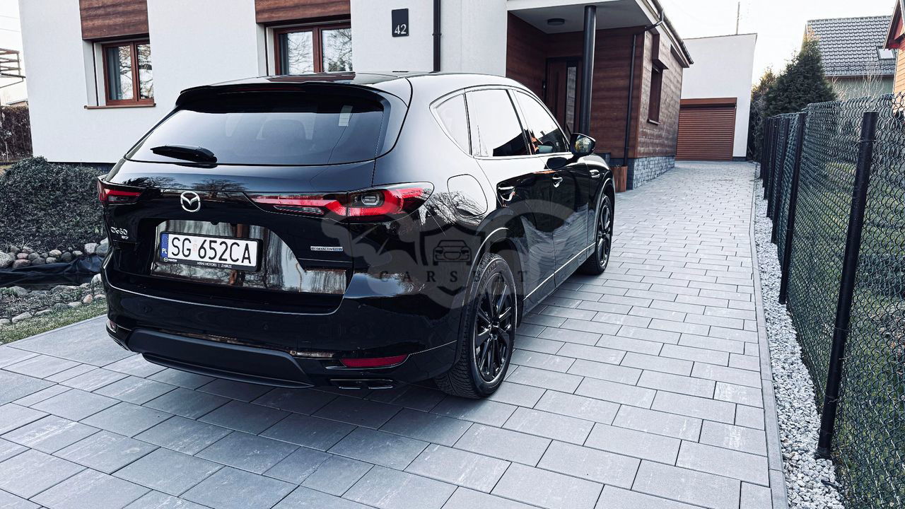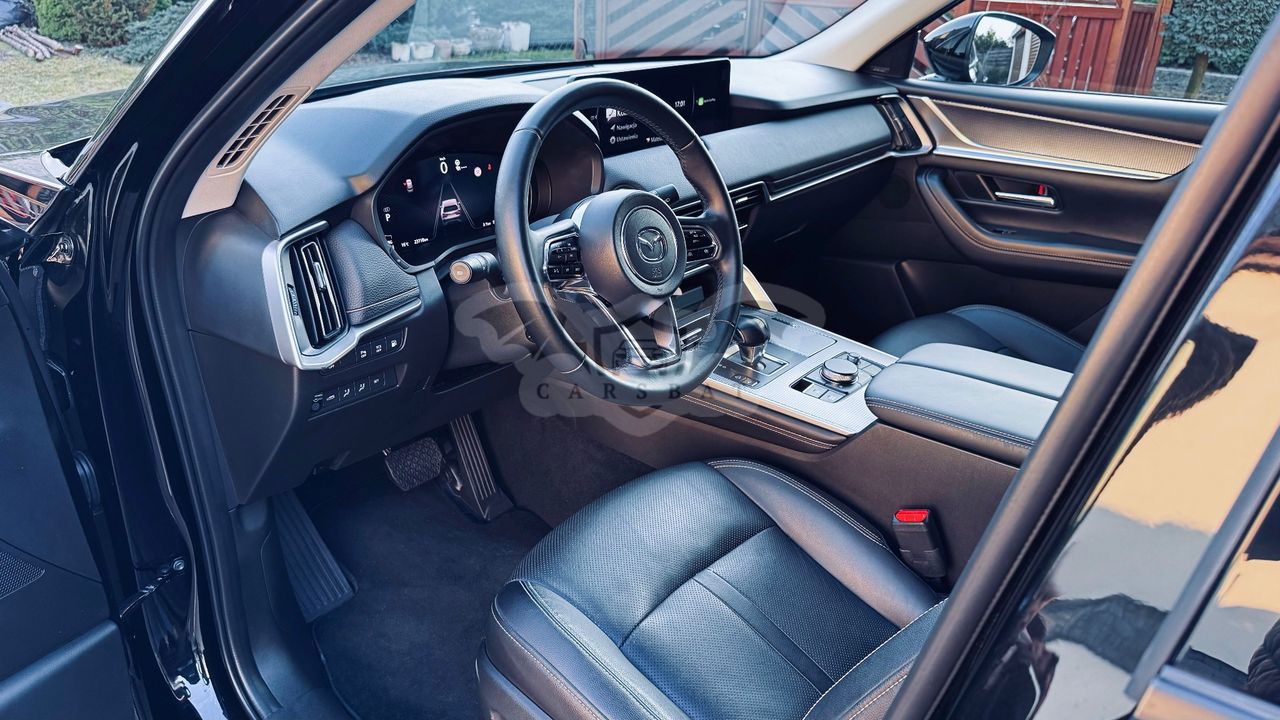 = Cesja leasingu operacyjnego = Mazda **2.5L e-SKYACTIV PHEV 327 wersja HOMURA w kolorze Jet Black. Polski salon z gwarancją producenta do 2029 roku! Powód sprzedaży - z samochodu jestem zadowolony, jedyny powód to powiększenie rodziny, które wymusza na mnie kupienie większego samochodu. Oczywiście samochód bezwypadkowy (możliwość sprawdzenia miernikami lakieru) i zadbany o czym poniżej w opisie. Warunki przejęcia leasingu: Przejęcie leasingu 20 325,20 zł netto (25 000 zł brutto). Koszt związany z formalnościami cesji pokrywam po swojej stronie. Pozostało 26 rat (licząc od marca) po 2 598,86 PLN netto (3 196,60 brutto) - rata progresywna, także w przypadku spadku stóp rata się zmniejszy - co już raz nastąpiło i rata się pomniejszyła o 150 zł. Wykup końcowy 69 357,72 zł netto (85 320 zł brutto) Łączny koszt całość (wliczając w to oprocentowanie leasingu, także wychodzi jakby leasing był na poziomie 0%) wynosi **157 261,46 zł netto** !! Dodatkowo: + Dorzucam opony zimowe **Michelin Pilot Alpin 5** - jedne z najlepszych na rynku (założone tylko jeden sezon). Wartość to 4500 zł + Dorzucam gumową matę zabezpieczającą bagażnik - (na stronie Mazdy to koszt około 670 zł) + Dorzuca, siatkę, które zapobiega przemieszczaniu się elementów w bagażniku (na stronie Mazdy to koszt 300zł) + Dorzucam system siatek, która zabezpiecza kabinę po złożeniu tylnich foteli i przewożeniu większych rzeczy (wpina się je przy drugim rzędzie siedzeń). Nigdy nie używane. + Kable ładujące + Zaawansowany system immobilizera EMG (radiowa karta identyfikacyjna kierowcy x 2 szt.) + Progi drzwi zostały zabezpieczone folią przeźroczystą - miejsce, najbardziej narażone na rysy (na stronie Mazdy to koszt 800zł) Pierwsza rejestracja Maja 2023 (produkcja koniec grudnia ‘22). Samochód posiada przejechane 23 500km - głównie dojazd do pracy, raz dłuższa wyprawa do Chorwacji. Możliwość jazdy na samym elektryku, wtedy spalanie to około 2l/100km. W przypadku braku ładowania (cały czas mamy dostępna moc z akumulatora, który się nie rozładowuje do 0% - system cały czas utrzymuje poziom baterii na 20% by mieć dostępną moc) to realne spalanie około 8.5l/100km. Samochód jest garażowany i zadbany. Serwisowany w ASO. Środek regularnie czyszczony kosmetykami do auto detailingu (marki Meguiar’s) tak by zabezpieczyć plastiki przed szybszym niszczeniem i blaknięciem przez promienie UV. Auto posiada kilka mikrorys na lakierze (taka specyfika wszystkich lakierów samochodowych w tych czasach). Skóra na siedzeniach nieponiszczona i pielęgnowana kosmetykami. Kierownica oraz gałka zmiany biegów w stanie idealnym. Na jednym z załączonych zdjęć zaznaczyłem drobne otarcie w środku przy nawiewie klimatyzacji (mało widoczne) oraz jedno otarcie w bagażniku (również mało widoczne) Technicznie wszystko sprawne - samochód posiada wykonane wszystkie wymagane przez Mazdę akcje serwisowe. Najważniejsze to te z zawieszeniem, które zostało wymienione na najnowsze w z Mazdy poprawiające komfort jazdy (na tym zawieszeniu przejechane około 5000km) Największe zalety samochodu dla mnie osoboście to: - Przyśpieszenie 5.8s - dzięki silnikowi elektrycznemu nie mamy również spwosonionej reakcji na gaz, które występuje w większości samochodów. Samochód reaguje natychmiast pod wciśnięciu pedału gazu. - Możliwość włączenia zdalnie klimatyzacji z dowolnego miejsca z poziomu aplikacji- super funkcja, która często jest dodatkiem w postaci webasto. Szczególnie przydatne latem gdy mamy upały i zimą. - Nagłośnienie Bose - gra rewelacyjnie. - Wentylowane siedzenia! - Bardzo szybkie sparowanie (zdalne oczywiście) z Apple Car Play i Android Auto - System kamer 360 oraz ich bardzo dobra jakość i możliwość przełączania na różne tryby. - Możliwość jazdy zarówno na samym elektryku (latem to faktycznie zasięg na poziomie 60km w mieście, zimą spada o połowę) co zmniejsza realnie koszt przejechania trasy ale też możliwość pokonywania dłuższych tras. - Powiadomienia o braku zaryglowanych drzwi i możliwość ich zdalnego zamknięcia (poprzez aplikację na telefonie) - Tryb OffRoad - w zimie podczas opadów śniegu ciężko wprowadzić samochód w poślizg. Kolejny przegląd w ASO i ubezpiecznie wypada w połowie maja. Pełne wyposażenie można sprawdzić na stronie producenta - Wersja Homara z nagłośnieniem Bose oraz elektryczną klapą bagażnika. Na wyposażeniu nie ma haka.