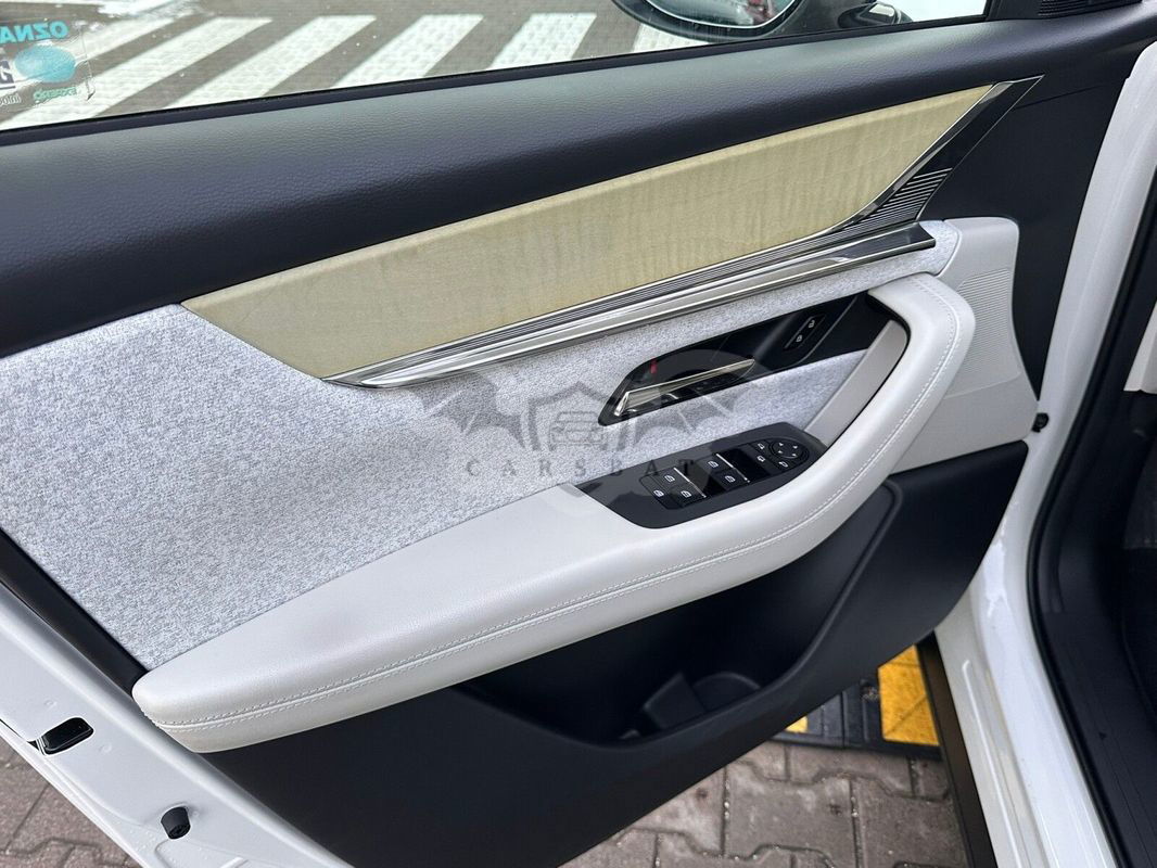 WAŻNIEJSZE ELEMENTY WYPOSAŻENIA: • Przednie, centralne, boczne (z przodu i z tyłu) i kurtynowe poduszki powietrzne • Poduszka kolanowa dla kierowcy • Czujnik ciśnienia w ogumieniu • Inteligentne wspomaganie hamowania (SBS) • Układ wspomagający awaryjne hamowanie przy jeździe do przodu (SCBS) • System wykrywający pojazdy w martwym punkcie (BSM) • System wykrywający ruch poprzeczny podczas cofania (RCTA) • System wykrywający znużenie kierowcy (Driver Alert) • System rozpoznający znaki ograniczenia prędkości (TSR) • System wspomagający utrzymanie pojazdu w pasie ruchu (LDWS / LKA) • Wspomaganie ruszania na wzniesieniu • Czujniki parkowania (przód i tył) • Kamera cofania • E-Call (system powiadamiania ratunkowego) • Automatyczne włączanie świateł drogowych (HBC) • System rozpoznawania twarzy (Driver Monitor) z funkcją pamięci ustawie • Lusterka zewnętrzne z pamięcią ustawie • System dostosowania optymalnej pozycji za kierownicą • Obręcze aluminiowe 20" Silver & Black • Światła do jazdy dziennej LED • Reflektory przednie LED • Spryskiwacze reflektorów • Lusterka boczne regulowane elektrycznie, automatycznie składane i podgrzewane • Tapicerka skórzana Nappa w kolorze białym • Oświetlenie ambientowe • Fotel kierowcy regulowany w 8 kierunkach • Fotel pasażera regulowany w 6 kierunkach • Elektryczna regulacja fotela kierowcy i pasażera (w 10 kierunkach) • Fotele przednie wentylowane • Fotele w II rzędzie podgrzewane • Skórzana kierownica i drążek zmiany biegów • Drugi rząd siedzeń dzielony 40:20:40 • Oświetlenie wewnętrzne LED • Oświetlenie przedniej konsoli • Oświetlenie podłogi w I rzędzie • Oświetlenie podłogi w II rzędzie • Klimatyzacja automatyczna dwustrefowa • Nawiewy dla II rzędu siedzeń • Kolorowy, dotykowy wyświetlacz centralny 12,3" • System sterowania multimediami HMI • Wyświetlacz projekcyjny head-up na przedniej szybie • Cyfrowe zegary (12,3") • Przycisk do uruchamiania silnika • Smart Keyless • Tempomat • Łopatki do zmiany biegów • Elektryczna regulacja kolumny kierownicy • Auto Hold • Czujnik deszczu (automatyczne wycieraczki) • Czujnik zmierzchu (automatyczne światła mijania) • Podgrzewanie pozycji wycieraczki • Podgrzewana kierownica • Podgrzewane fotele w I rzędzie i zewnętrzne siedziska kanapy tylnej • System ułatwiający wsiadanie i wysiadanie kierowcy • 4 porty USB-C (2 w przedniej konsoli oraz 2 w II rzędzie) oraz dwa gniazda 12V • Radio FM oraz DAB • Nagłosnienie Bose 12 głośników • Zestaw głośnomówiący Bluetooth • Interfejs bezprzewodowy Apple Carplay / Android Auto • Tryb OFF-ROAD • Pakiet Comfort