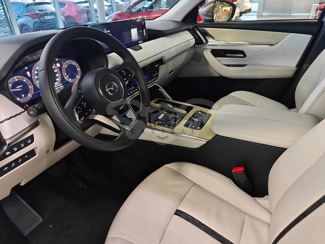 Nowa Mazda CX-80 Homura Plus, SUV 5 dr 3.3 Diesel 254 KM 8 AT, 4x4 Zestaw kół zimowych Dostępny od ręki Bezpieczeństwo -Układ wspomagający ruszanie na wzniesieniu (HLA) -System dynamicznej stabilizacji toru jazdy (DSC) -Przednie i boczne poduszki powietrzne + kurtyny powietrzne + poduszka kolanowa dla kierowcy -Immobilizer fabryczny -Zestaw naprawczy do kół -System monitorowania ciśnienia w ogumieniu (TPMS) -System monitorujący ruch poprzeczny przed pojazdem (FCTA) -System monitorujący ruch poprzeczny przy cofaniu (RCTA/RCTB) -System monitorowania martwego pola (BSM) z funkcją ostrzegania przed otwarciem drzwi na postoju -System wykrywający znużenie kierowcy (Driver Alert) -System wykrywający znużenie kierowcy z kamerą (Driver Alert) -System rozpoznający znaki ograniczenia prędkości (TSR) -Inteligentny Asystent Prędkości (ISA) -System wspomagający utrzymanie pojazdu w pasie ruchu (LDWS + LAS) -Awaryjne utrzymywanie pasa ruchu (ELK), asystent utrzymania drogi i asystent unikania ruchu czołowego -Czujniki parkowania przednie i tylne -Kamera cofania -System e-Call z funkcją GPS -System automatycznego przełączania świateł drogowych na mijania (HBC) -Adaptacyjny układ utrzymywania stałej prędkości (aktywny tempomat - MRCC) -System kamer 360° (z funkcją See-Through View) -Alarm antywłamaniowy Elementy wewnętrzne -Tapicerka skórzana w kolorze białym Nappa -Podsufitka jasna -Regulacja fotela kierowcy (w 8-kierunkach) -Regulacja fotela pasażera (w 6-kierunkach) -Regulacja fotela kierowcy i pasażera (w 8-kierunkach) z funkcją regulacji odcinka lędźwiowego -Multimedialny system rozrywki i łączności Mazda Connect (z ekranem 12,3") -Elektrycznie sterowane szyby przednie i tylne -Lusterko wsteczne elektrochromatyczne (bez ramki) -Skórzana kierownica w kolorze czarnym z białymi przeszyciami -Elektryczna regulacja kierownicy -Skórzana dźwignia zmiany biegów -Kanapa w II rzędzie z podłokietnikiem, dzielona 60:40 -Podgrzewane fotele w II rzędzie (2 miejsca) -2 fotele w III rzędzie -Klimatyzacja automatyczna (trzystrefowa) -Nawiewy dla II i III rzędu siedzeń -Przednie fotele wentylowane -Osłony przeciwsłoneczne w II rzędzie -Ergonomiczny system sterowania HMI (pokrętło wielofunkcyjne) -Kolorowy wyświetlacz head-up na przedniej szybie -Centralny podłokietnik dla kierowcy i pasażera -Cyfrowe zegary (12,3") -Roleta przestrzeni bagażowej -Ładowarka indukcyjna (Qi) -Gniazdo prądu przemiennego 150W -Gniazdo prądu przemiennego 1500W (tylko wersja PHEV) -Oświetlenie ambientowe (w drzwiach) Multimedia -2 porty USB-C -2 gniazda 12V -System audio z radiem FM i radiem cyfrowym (DAB) -8 głośników -Przestrzenny system nagłośnieniowy Bose® (12 głośników) -Zestaw głośnomówiący Bluetooth -Apple CarPlay® i Android Auto® (również z obsługa bezprzewodową) -System nawigacji Mazda (z połączeniem internetowym) -Sterowanie głosowe Amazon Alexa -Usługi połączone (w aplikacji MyMazda) Elementy zewnętrzne -Felgi aluminiowe 20" Grey z oponami 235/50 -Przednie reflektory diodowe (LED) ze spryskiwaczem -Światła do jazdy dziennej (LED) -Przednie matrycowe reflektory diodowe (LED) z systemem oświetlenia adaptacyjnego (ALH) -Lusterko zewnętrzne samościemniające (po stronie kierowcy) -Tylne światła diodowe (LED) -Relingi dachowe (srebrne) -Lusterka boczne podgrzewane, sterowane i składane elektrycznie -Lusterko po stronie kierowcy automatycznie opuszczane podczas cofania -Elektryczna regulacja pokrywy bagażnika (z funkcją bezdotykową) -Przyciemniane tylne szyby -Dach panoramiczny Komfort -Kinematic Posture Control (KPC) -Przycisk do uruchamiania silnika -Zaawansowany system dostępu bez kluczyka (Smart keyless) -Łopatki do zmiany biegów (skrzynia automatyczna) -Elektromechaniczny hamulec postojowy z funkcją Autohold -Czujnik deszczu (automatyczne wycieraczki) i czujnik zmierzchu (automatyczne światła) -System wyboru trybu jazdy Mi-Drive -System kontroli zjazdu ze wzniesienia (HDC) -Podgrzewane wycieraczki przedniej szyby -Podgrzewana kierownica -Podgrzewane fotele przednie -Fotel kierowcy regulowany elektrycznie z pamięcią ustawień, systemem Driver Personalisation i Driving Position Assist -Pakiet Comfort -Pakiet Convenience & sound -Pakiet Driver assistance -Dach panoramiczny ZAPEWNIAMY PEŁNĄ OBSŁUGĘ KREDYTOWO- LEASINGOWĄ ORAZ UBEZPIECZENIOWĄ. Przyjmujemy w rozliczeniu samochody wszystkich marek Zapraszamy do kontaktu: Krzysztof Dąbrowski Dymitr Ukraincew Łukasz Sosiński Sebastian Wesołowski