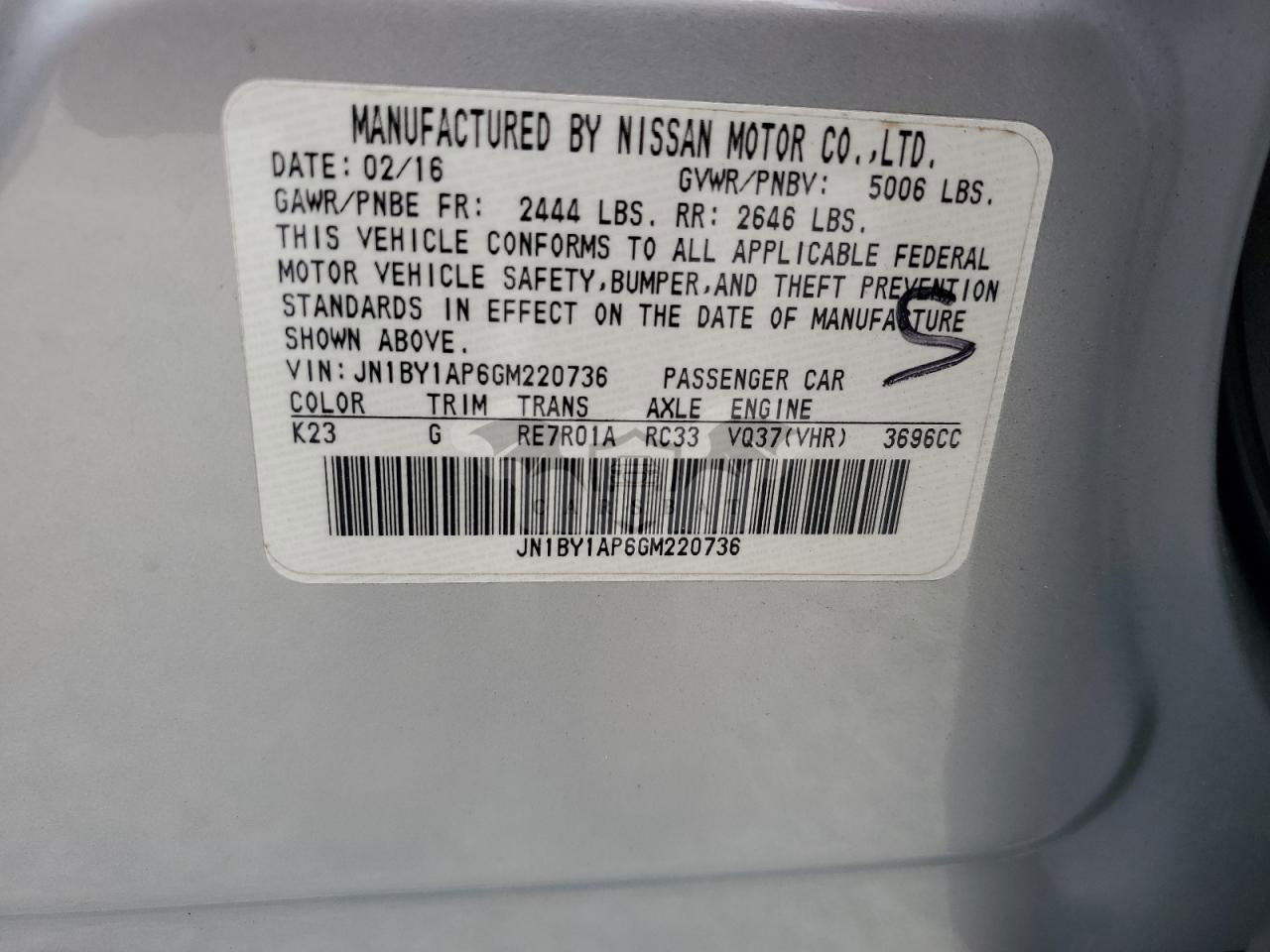 • VIN: JN1BY1AP6GM220736