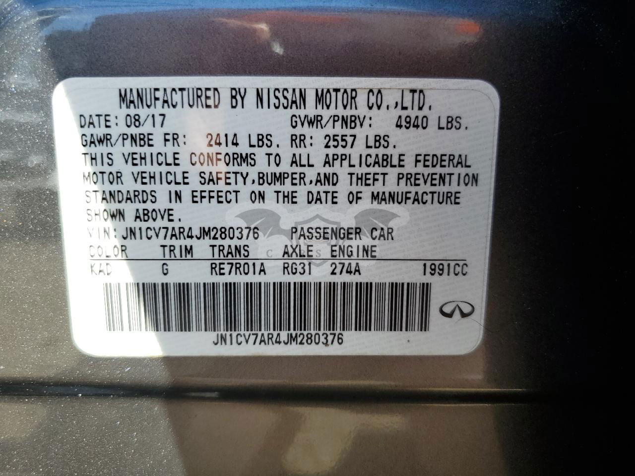 • VIN: JN1CV7AR4JM280376