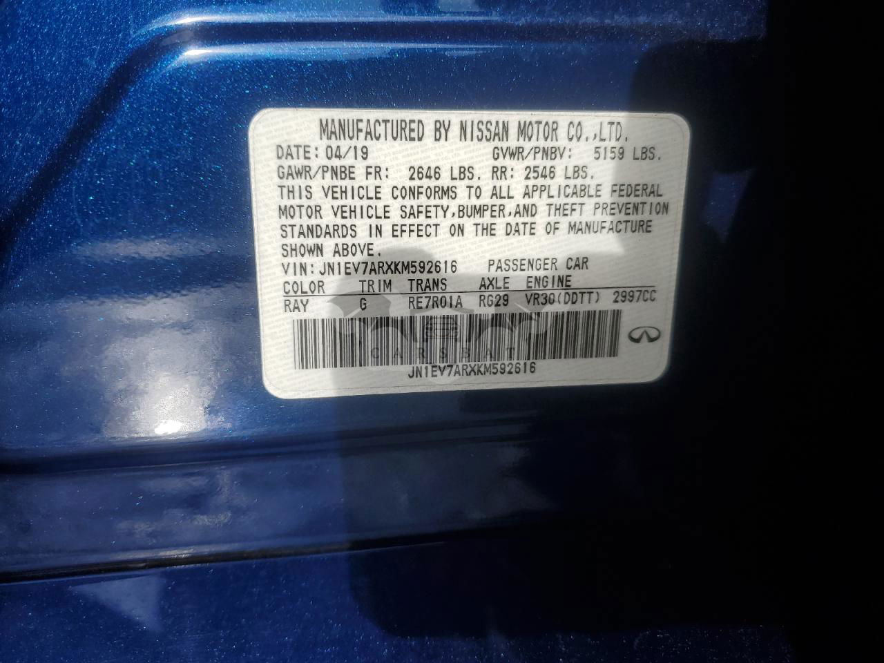 • VIN: JN1EV7ARXKM592616